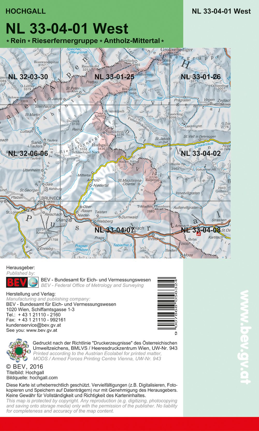 BEV-Karte 3101-West, Hochgall 1:25 000V
