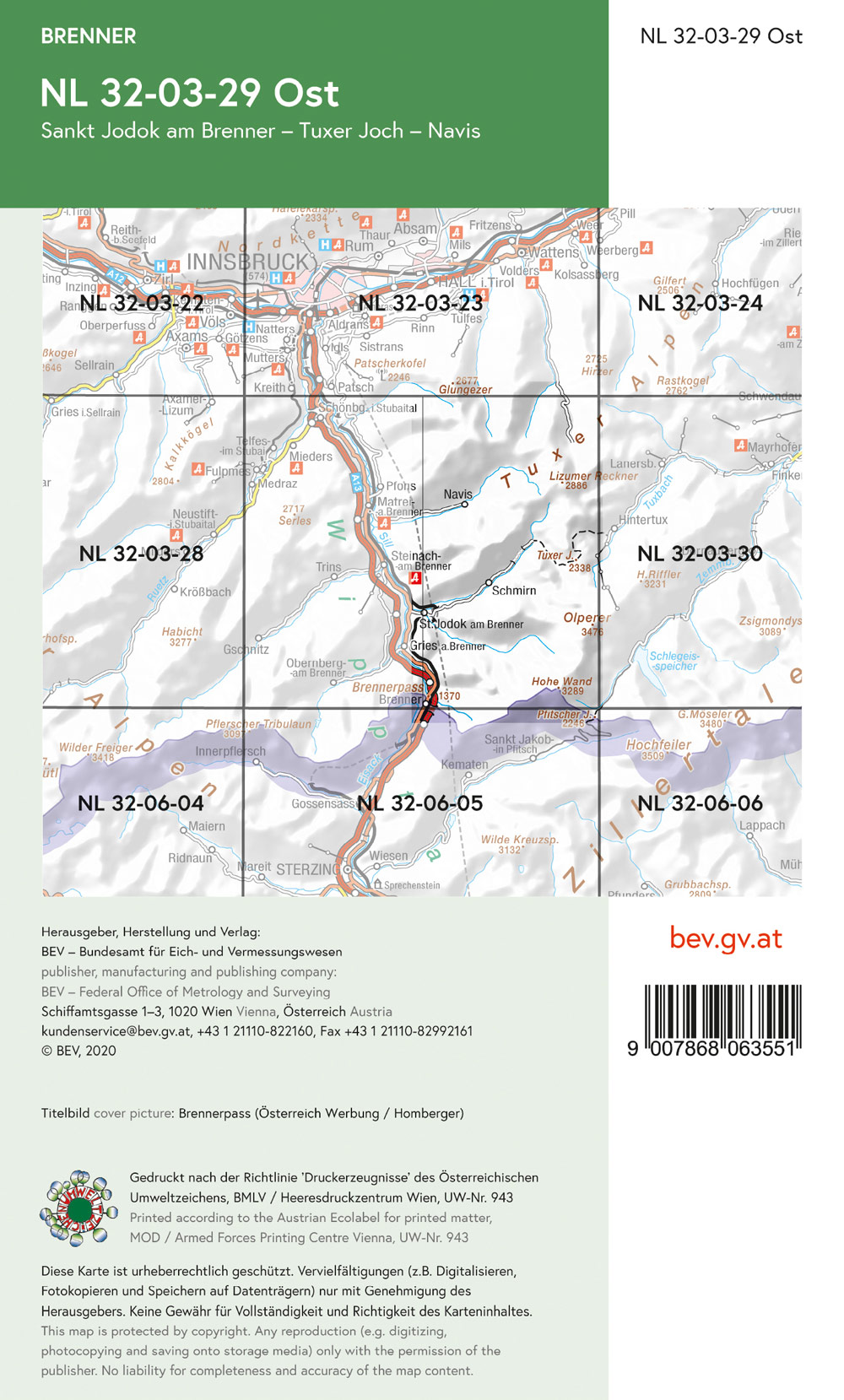 BEV-Karte 2229-Ost, Brenner 1:25 000V