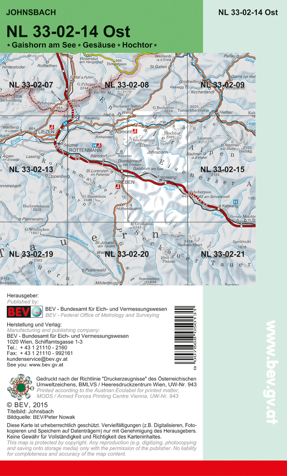 BEV-Karte 4214-Ost, Johnsbach 1:25 000V