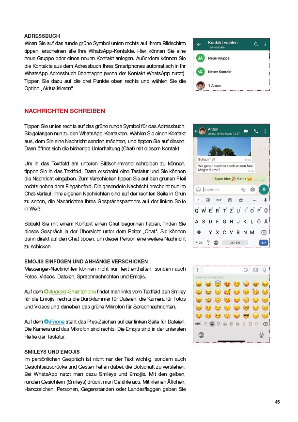 Auf 72 Seiten werden die grundlegenden Funktionen und Einstellungen des Smartphones erklärt, über Sicherheit und Datenschutz informiert, gezeigt wie man Messenger (WhatsApp,Telegram ...) installiert und nutzt, verschiedene Messenger verglichen sowie nützliche Apps empfohlen. Die Autor*innen haben ihre Erfahrungen aus ihren Angeboten für Senior*innen (Smartphonesprechstunde der youngcaritas Dortmund und "Frag Moritz", Freiburg) in die Erstellung der Broschüre einfließen lassen. Die Broschüre enthält zahlreiche Abbildungen und in einem umfangreichen Anhang werden alle Fachbegriffe erklärt.