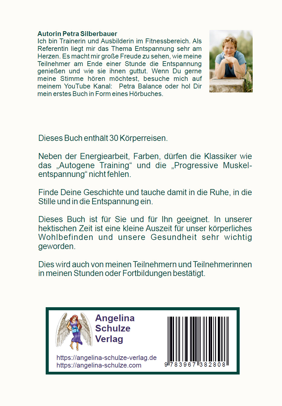 Ich bin Trainerin und Ausbilderin im Fitnessbereich. Als Referentin liegt mir das Thema Entspannung sehr am Herzen. Es macht mir große Freude zu sehen, wie meine Teilnehmer am Ende einer Stunde die Entspannung genießen und wie sie ihnen guttut. Wenn Du gerne meine Stimme hören möchtest, besuche mich auf meinem YouTube Kanal: Petra Balance