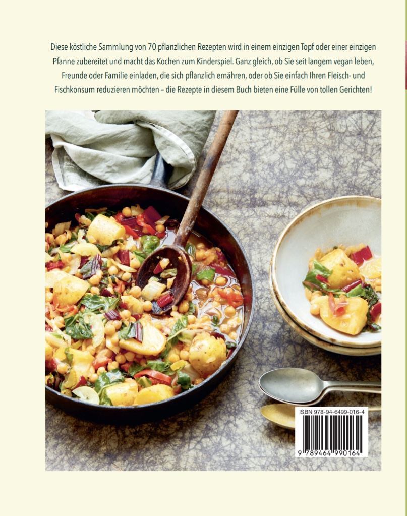 70 einfache und vegane Gerichte, in einem Topf oder Pfanne zubereitet.Immer mehr von uns verzichten auf tierische Lebensmittel oder reduzieren deren Verzehr.Die Rezepte in diesem Buch setzen auf eine Vielfalt an frischem Gemüse, zusammen mit schmackhaften veganen Proteinquellen wie Bohnen, Linsen und Nüssen. Die Zutaten nehmen ihre Inspiration aus der ganzen Welt, um herzhafte und nahrhafte Mahlzeiten mit spannenden und unwiderstehlichem Geschmack zu kreieren. Jedes Gericht ist perfekt ausbalanciert und bietet eine komplette Mahlzeit, alles in einem Topf oder Pfanne gekocht für ultimative Einfachheit.Egal, ob Sie schon lange Veganer sind, Freunde oder Familie bewirten, die möglicherweise eine pflanzliche Ernährung verfolgen, oder einfach versuchen, Ihren Fleisch- und Fischkonsum zu reduzieren. Diese Buch wird ihre Küche bereichern.