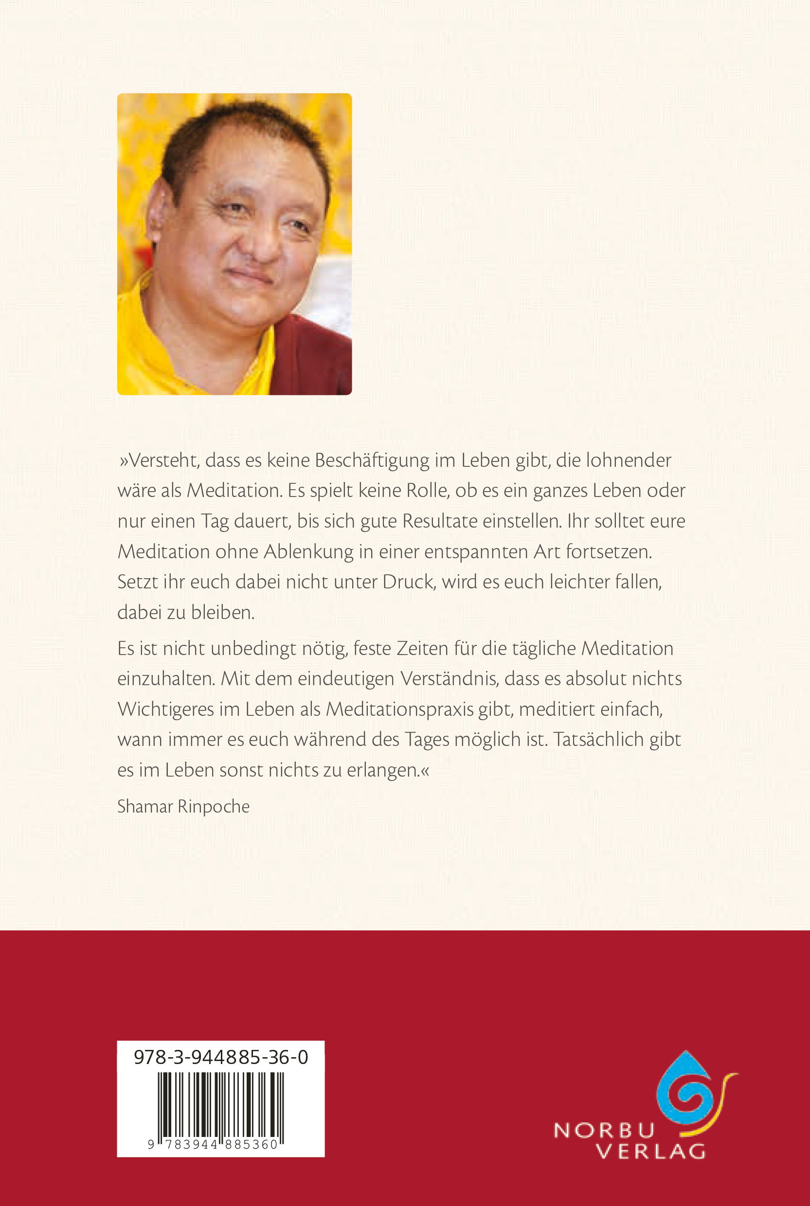 »Versteht, dass es keine Beschäftigung im Leben gibt, die lohnender wäre als Meditation. Es spielt keine Rolle, ob es ein ganzes Leben oder nur einen Tag dauert, bis sich gute Resultate einstellen. Ihr solltet eure Meditation ohne Ablenkung in einer entspannten Art fortsetzen. Setzt ihr euch dabei nicht unter Druck, wird es euch leichter fallen, dabei zu bleiben.