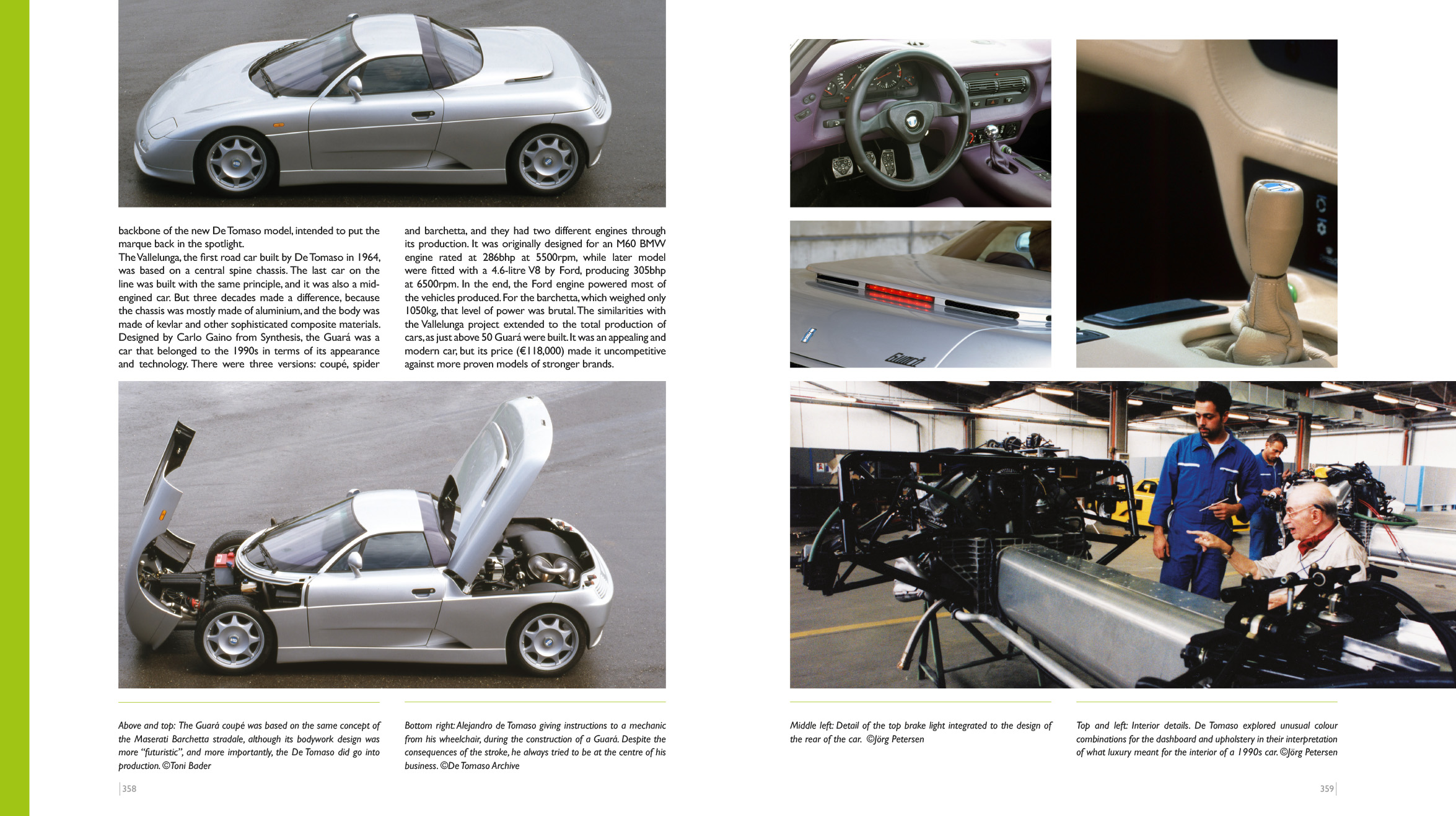 Ce livre qui recèle plus de 490 photos, souvent en grand format, est le résultat de plusieurs années de recherches de deux spécialistes reconnus de la marque qui ont eu accès à des contrats, des correspondances, des photos et des plans originaux issus des archives de l’usine. C’est ainsi que tous les projets et modèles produits entre 1959 et 2003 ont pu être décrits, depuis les premiers prototypes et monoplaces ISI jusqu’à l’exotique Guará Barchetta. Un coup de projecteur est également mis sur un certain nombre de projets pas ou peu connus du public comme la 2000 Gt qui a précédé la Vallelunga, la version Chrysler de la Pantera II et la Nuova Vallelunga conçues par Enrique Scalabroni. L'ouvrage contient les informations les plus détaillées à ce jour sur les chiffres de production et les numéros de châssis des autos de route et de course, tous basés sur les documents manuscrits des archives de la marque, ainsi qu'une annexe avec le détail de plus de 1100 participations à diverses courses. Ce livre est publié dans une édition limitée à seulement 550 exemplaires numérotés.