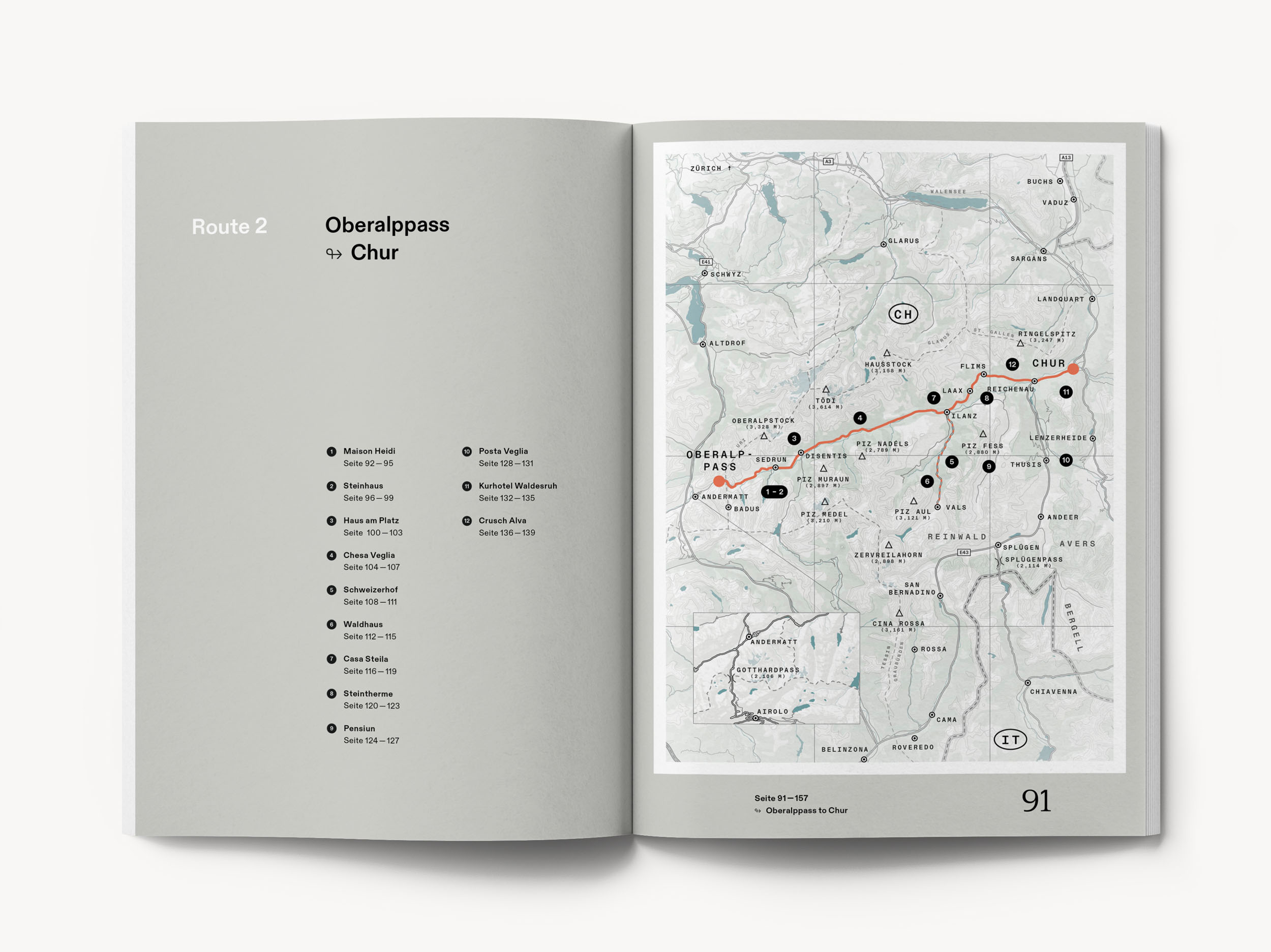 On the menu: The best places to stay in Grisons, selected stopovers, architectural highlights and overview maps.