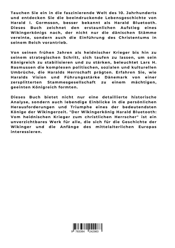 Tauchen Sie ein in die faszinierende Welt des 10. Jahrhunderts und entdecken Sie die beeindruckende Lebensgeschichte von Harald I. Gormsson, besser bekannt als Harald Bluetooth. Dieses Buch zeichnet den erstaunlichen Aufstieg eines Wikingerkönigs nach, der nicht nur die dänischen Stämme vereinte, sondern auch die Einführung des Christentums in seinem Reich vorantrieb.Von seinen frühen Jahren als heidnischer Krieger bis hin zu seinem strategischen Schritt, sich taufen zu lassen, um sein Königreich zu stabilisieren und zu stärken, beleuchtet Lars H. Rasmussen die komplexen politischen, sozialen und kulturellen Umbrüche, die Haralds Herrschaft prägten. Erfahren Sie, wie Haralds Vision und Führungsstärke Dänemark von einer zersplitterten Stammesgesellschaft zu einem mächtigen, geeinten Königreich formten.Dieses Buch bietet nicht nur eine detaillierte historische Analyse, sondern auch lebendige Einblicke in die persönlichen Herausforderungen und Triumphe eines der bedeutendsten Könige der Wikingerzeit. "Der Wikingerkönig Harald Bluetooth: Vom heidnischen Krieger zum christlichen Herrscher" ist ein unverzichtbares Werk für alle, die sich für die Geschichte der Wikinger und die Anfänge des mittelalterlichen Europas interessieren.