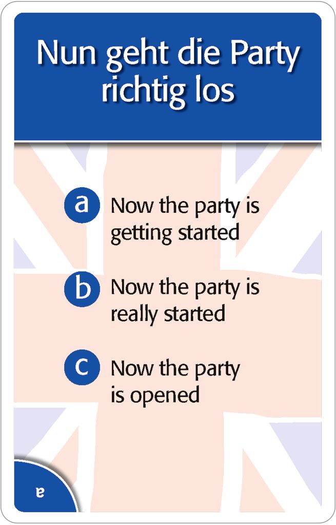 + Bei einer richtigen Antwort gilt es, die korrekte englische Redewendung herauszufinden.