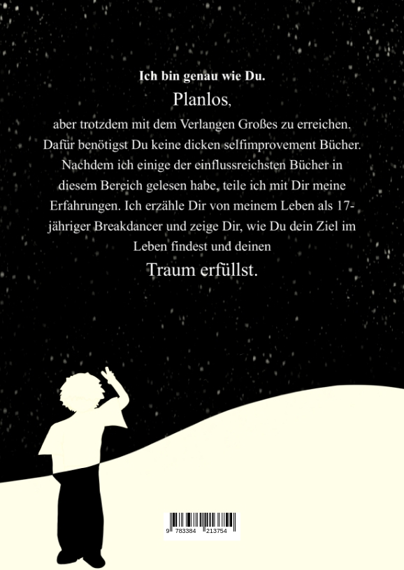 Ich bin genau wie Du. Planlos, aber trotzdem mit dem Verlangen Großes zu erreichen. Dafür benötigst Du keine dicken selfimprovement Bücher. Nachdem ich einige der einflussreichsten Bücher in diesem Bereich gelesen habe, teile ich mit Dir meine Erfahrungen. Ich erzähle Dir von meinem Leben als 17-jähriger Breakdancer und zeige Dir, wie Du dein Ziel im Leben findest und deinen Traum erfüllst.