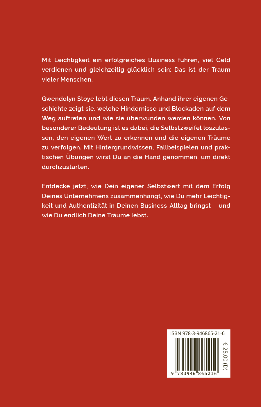 Ein erfolgreiches Business führen, voller Leichtigkeit (viel) Geld verdienen und dabei glücklich sein - das ist der Traum von vielen Menschen. Doch wie ist das in der heutigen Zeit überhaupt möglich? Gwendolyn Stoye zeigt an ihrem eigenen Weg, welche Blockaden häufig im Weg stehen und wie diese überwunden werden können. Sie ermutigt die Leserinnen und Leser dazu, die eigenen Selbstzweifel loszulassen und die eigenen Träume zu verfolgen. Das Buch beinhaltet Hintergrundwissen, Fallbeispiele und praktische Übungen, die direkt zur Umsetzung einladen.
