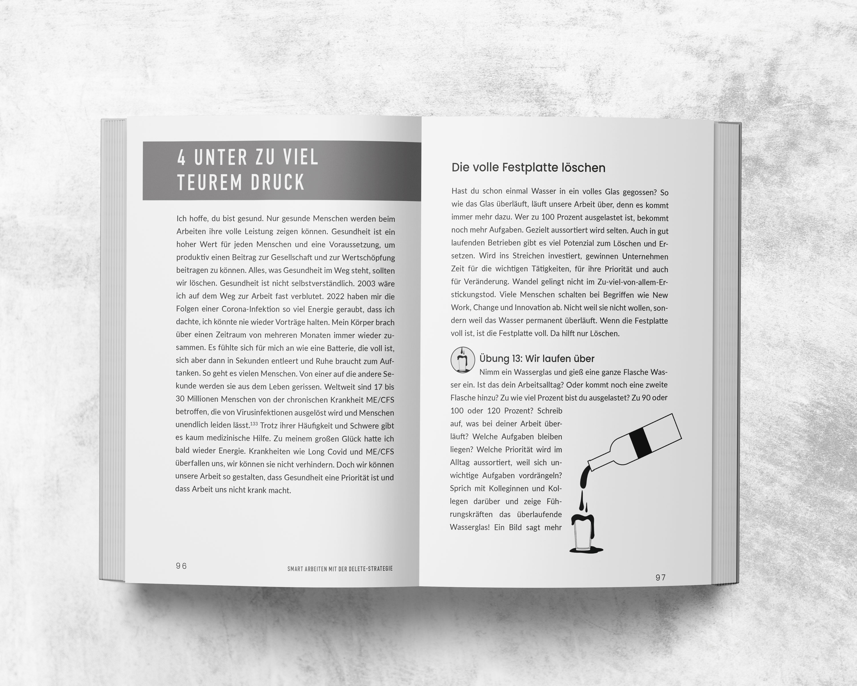 Schluss mit Meeting-Wahn und Stress im Job! Du willst beruflicher Überlastung und Zeitdruck entgegenwirken und erhoffst dir einen produktiveren Workflow? Lerne, wie du dich und dein Team vor Burnout bewahren und die Leistungsfähigkeit deines Teams langfristig steigern kannst.Immer komplexer werdende Arbeitsabläufe und zunehmender Zeitdruck führen nicht selten zu Überlastung und völliger Erschöpfung. Hinzu kommt die ständige Teilnahme an Meetings, wodurch wichtige Arbeitsprozesse unterbrochen werden. Dies geht erheblich zu Lasten der allgemeinen Produktivität. Um die verlorene Zeit aufzuholen, arbeitest du länger und machst regelmäßig Überstunden. Du versuchst es mit Stressmanagement, aber du hast keine Ahnung, wie du als Führungskraft neben der Mitarbeiterführung noch Zeit dafür finden sollst. Völlig ausgelaugt kommst du erst spät abends nach Hause und hast weder Zeit noch Lust für Familie und Hobbys. Unzufriedenheit und der Gedanke an Zeitverschwendung und Sinnlosigkeit kommen auf. Der Termin- und Aufgabendruck im Beruf muss reduziert werden, ansonsten kann die Überlastung schwerwiegende Folgen für dich und dein Team haben:Beeinträchtigung der ProduktivitätUnzufriedenheit aufgrund langer Arbeitszeiten und ÜberstundenWenig Zeit für das PrivatlebenKrankheit durch ÜberforderungRisiko eines BurnoutsDoch aufgepasst:Die Lösung des Problems liegt nicht im „Mehr“, sondern im „Weniger“. Mit den richtigen Tools kannst du alles zum Positiven verändern und nicht relevante Aufgaben streichen. Das schafft Platz für Freiräume. Arbeitszeit reduzieren bei vollem Lohn – das geht! Tausende Firmen machen es bereits vor: mit einer 4-Tage-Woche-Vollzeit oder 25-Stunden-Vollzeit.Wenn du einen praxisnahen Ansatz zur Arbeitsoptimierung, Zeitmanagement und Entlastung suchst, ist dieses Buch dein perfekter Berater!„_Smart arbeiten mit der Delete-Strategie“_ unterstützt dich dabei, belastenden Aufgabendruck bei der Arbeit hinter dir zu lassen und ein erfüllendes Arbeitsleben zu schaffen. So hast du mehr Zeit für relevante Arbeiten, förderst den Stressabbau und gewinnst die Freude an deinem Beruf zurück.Das erwartet dich:Unterhaltsame persönliche Geschichten und Erfahrungen, die dir im Gedächtnis bleiben.Praktische Tipps, die dein Leben positiv beeinflussen werden.Mehr Freude im Alltag und weniger Stress tragen dazu bei, die Probleme des Lebens zu meistern.Grundlegende Schritte zur Um- und Neuorientierung.Motivation, neue Organisationsmethoden auszuprobieren.„_Smart arbeiten mit der Delete-Strategie_“: Der Titel ist Programm! Die Tools in diesem Buch „Streichen, ersetzen und Steigern“, die „Delete-Brille“ und „Zeit-Wirkungs-Kreisen“ führen dich unterhaltsam und binnen kürzester Zeit zu besseren Arbeitsabläufen und damit zu mehr Zufriedenheit im Job. Du willst endlich wieder Bock auf Arbeit haben? Dann besorg dir noch heute dein Exemplar und schaffe Platz für gesunde Leistungsfähigkeit, die dich aufatmen lässt!Delete Work: Be happy!