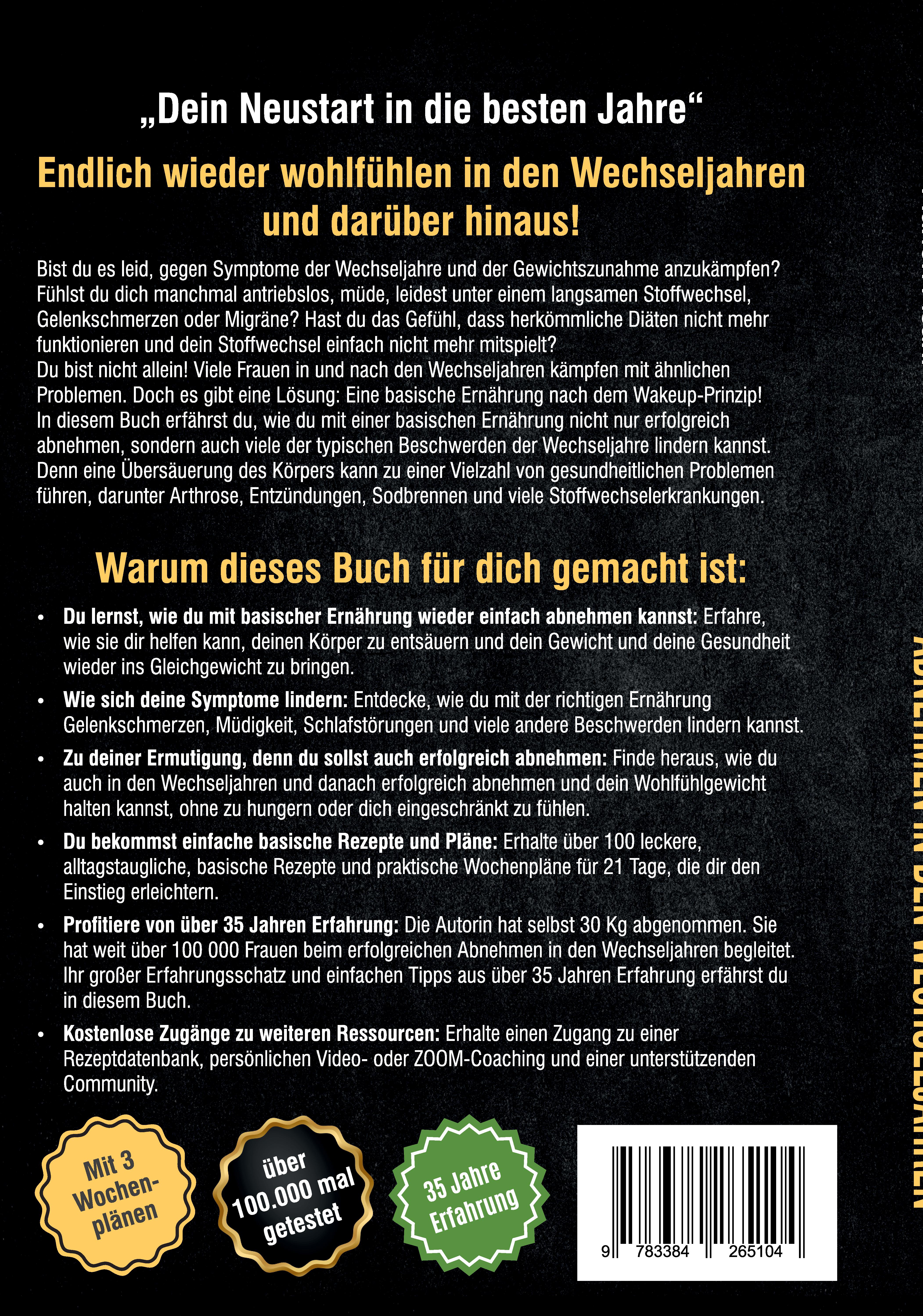 Ich bin Marion Pisani, geboren 1960, und ich kann dich gut verstehen, denn ich kenne dein Problem aus eigener Erfahrung. Seit nunmehr über 30 Jahren habe ich in meiner Tätigkeit als Ernährungsberaterin seit 1989 Tausende von Frauen begleiten dürfen. Ich habe viele Schulungen und Ausbildungen in den letzten Jahrzehnten durchlaufen. Gleichzeitig bin ich Bewegungstrainerin nach dem „Von Kunhardt-Konzept“ und Buchautorin vieler Bücher rund um die basische Ernährung. Mein größtes Wissen habe ich jedoch aus der Praxis und aus meiner Erfahrung aus mehreren Jahrzehnten gewonnen. Da ich selbst betroffen bin und den Diäten-Dschungel und das ganze Leid dahinter zutiefst kenne, bin ich sehr dankbar, dass ich aussteigen konnte und seit Jahrzehnten Frauen helfen darf, das Gleiche zu tun. Frauen, die ebenfalls ausgestiegen sind. Die 10 bis 100 Pfund und mehr abgenommen und ihre Gesundheit wieder zurückerobert haben. Etwas später erzähle ich dir von meinem eigenen Leidensweg, wie ich zu einem Leben in Lebensfreude mit 30 Kilogramm Gewichtsabnahme gekommen bin. Wenn du dich in den Wechseljahren befindest und das Gefühl hast, dass Abnehmen ein unerreichbares Ziel geworden ist, bist du hier genau richtig. Du bist nicht allein. Viele Frauen in deinem Alter kämpfen mit den gleichen Herausforderungen, und ich bin hier, um dir zu zeigen, dass es einen Weg gibt. Kennst du das Gefühl, gefangen in deinem eigenen Körper zu sein, geplagt von Schmerzen und Müdigkeit? Arthrose, Gelenkschmerzen und Schlafstörungen müssen nicht länger dein Alltag sein. Es gibt Hoffnung, und es gibt Lösungen. Du verdienst es, voller Energie und Lebensfreude zu sein, und dieses Buch wird dir den Weg dorthin zeigen. Bluthochdruck und andere gesundheitliche Beschwerden können beängstigend sein, aber du hast die Macht, deine Gesundheit in die eigenen Hände zu nehmen. Mit den richtigen Strategien und einem klaren Plan wirst du nicht nur deinen Blutdruck stabilisieren, sondern auch ein neues Level an Wohlbefinden erreichen. Dein Selbstwertgefühl spielt eine entscheidende Rolle auf deinem Weg zum Erfolg. Es ist an der Zeit, dich wieder in deinem Körper wohlzufühlen und dein Selbstbewusstsein zurückzugewinnen.
