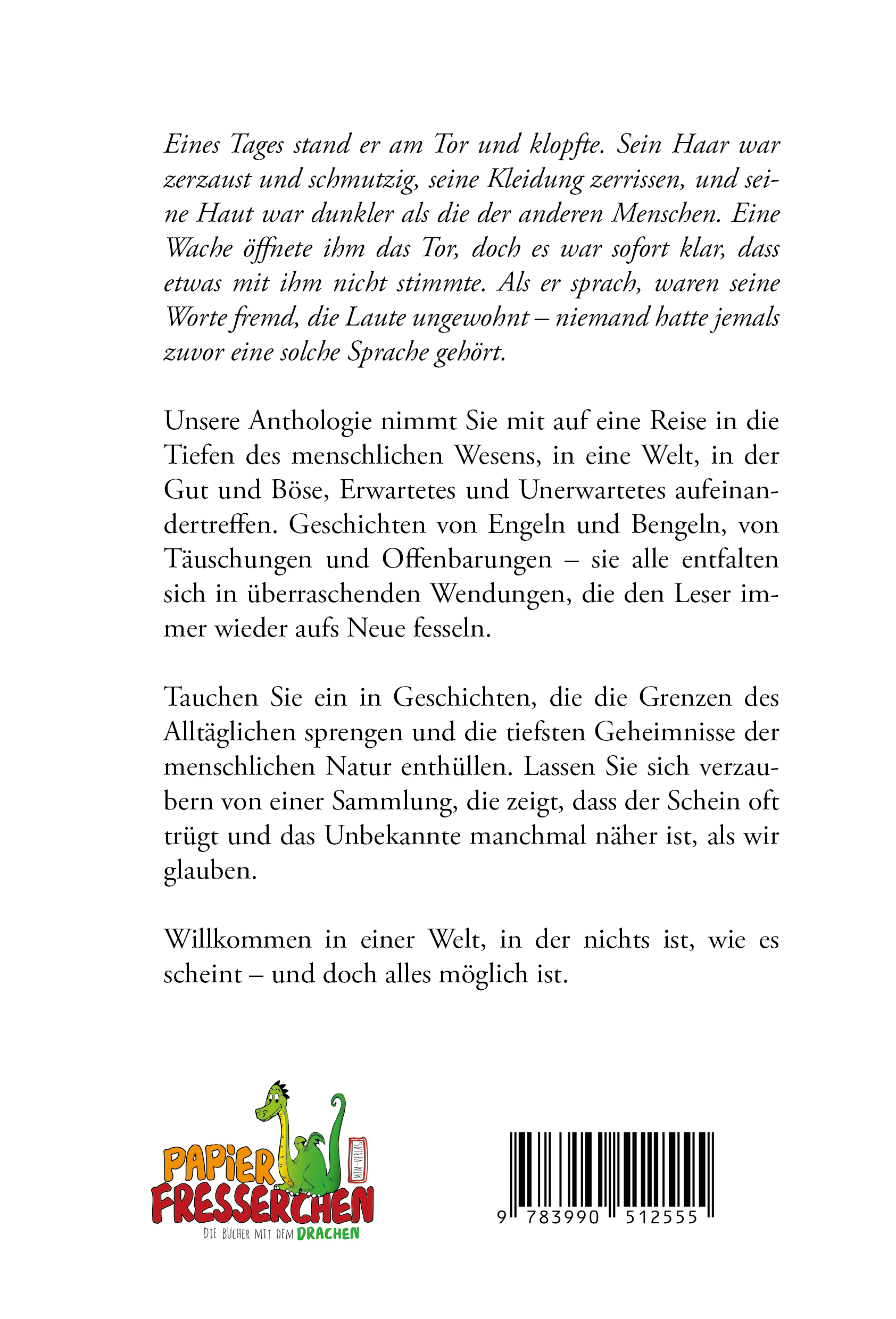 Unsere Anthologie nimmt Sie mit auf eine Reise in die Tiefen des menschlichen Wesens, in eine Welt, in der Gut und Böse, Erwartetes und Unerwartetes aufeinandertreffen. Geschichten von Engeln und Bengeln, von Täuschungen und Offenbarungen – sie alle entfalten sich in überraschenden Wendungen, die den Leser immer wieder aufs Neue fesseln.