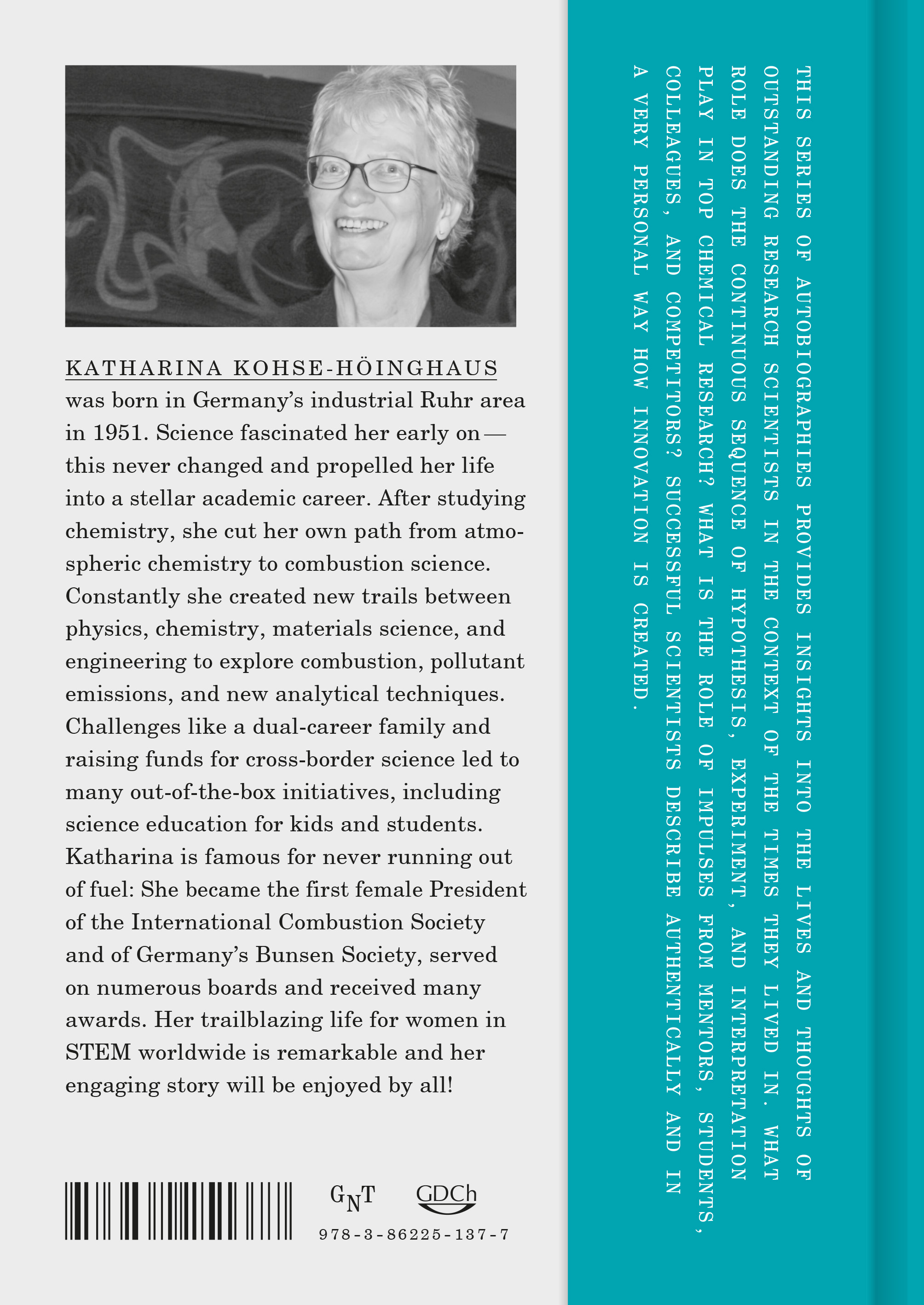 KATHARINA KOHSE-HÖINGHAUS was born in Germany's industrial Ruhr area in 1951. Science fascinated her early on-this never changed and propelled her life into a stellar academic career. After studying chemistry, she cut her own path from atmospheric chemistry to combustion science.