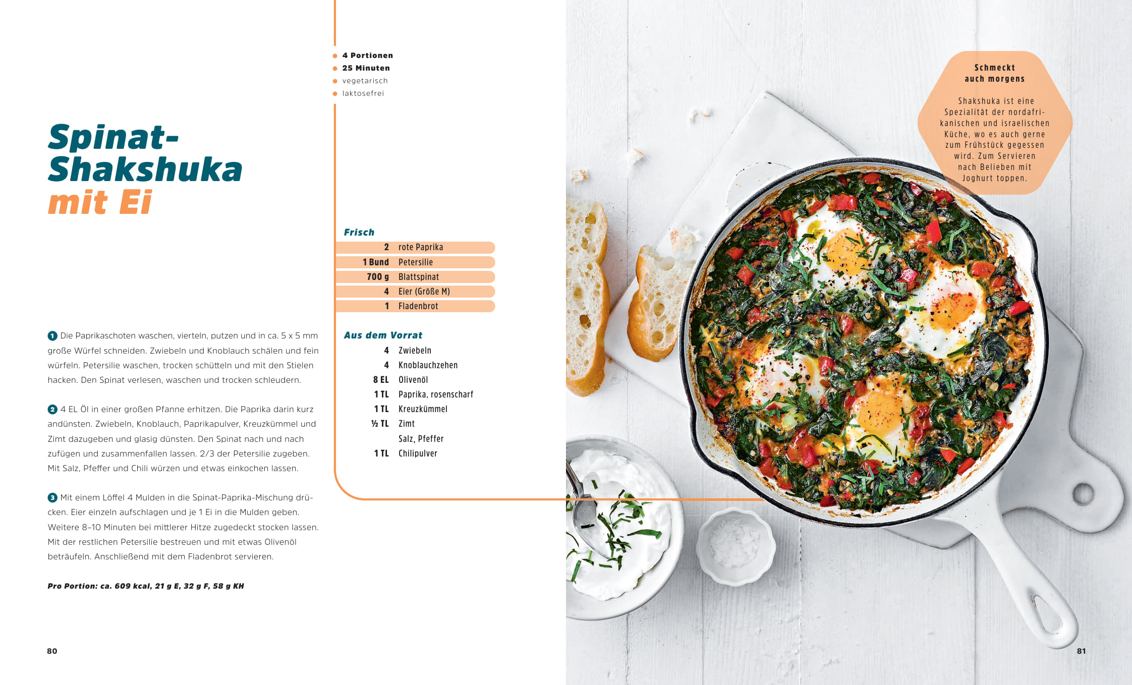Wer sagt, dass gutes Essen kompliziert sein muss? Das EDEKA Kochbuch "5 und fertig!" zeigt mit 70 leckeren und schnellen Rezepten, dass weniger oft mehr ist. Dabei ist der Titel Programm: Mit nur fünf frischen Zutaten sind die Gerichte in maximal 30 Minuten zubereitet. Ob Himbeer-Porridge oder Spinat-Frittata, Parmesanschnitzel oder Pizza-Bites: Insbesondere Familien und Vielbeschäftigte erhalten auf 128 Seiten köstliche Inspiration für jeden Tag.