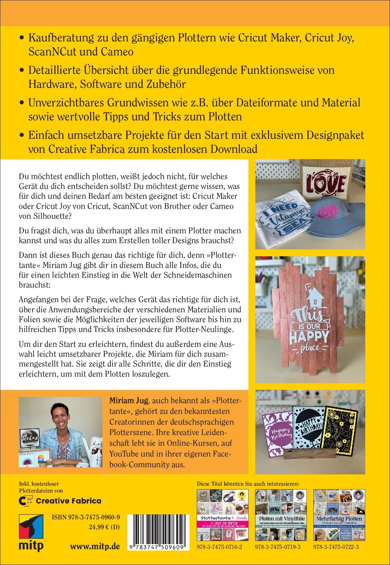 Du möchtest endlich plotten, weißt jedoch nicht, ob du dich für ein Gerät von Cricut, Brother oder Silhouette entscheiden sollst? Du möchtest den Unterschied zwischen Vinylfolie und Flexfolie wissen und fragst dich, was du überhaupt alles mit einem Plotter machen kannst? Dann ist dieses Buch genau das richtige für dich, denn "Plottertante" Miriam Jug gibt dir darin einen leicht zugänglichen Einstieg in die Welt der Schneidemaschinen.