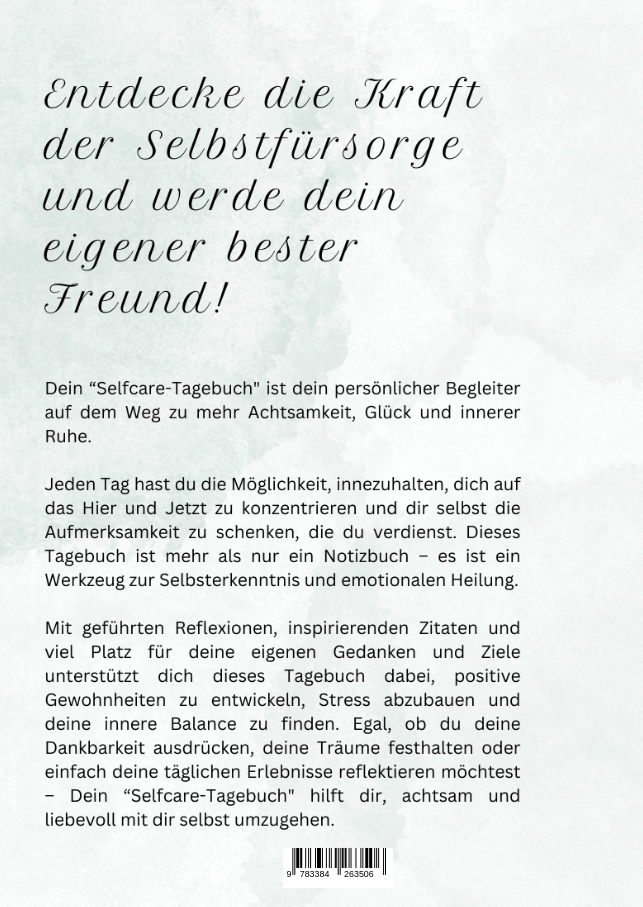 | Schlagworte | Achtsamkeit • Affirmation • Gedanken • Gefühle • Kreativität • Reflexion • Selbsterkenntnis • Selbstfürsorge • Stressabbau • Tagebuch |