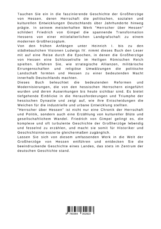 Tauchen Sie ein in die faszinierende Geschichte der Großherzöge von Hessen, deren Herrschaft die politischen, sozialen und kulturellen Entwicklungen Deutschlands über Jahrhunderte hinweg prägte. In seinem meisterhaften Werk "Herrscher über Hessen" schildert Friedrich von Gimpel die spannende Transformation Hessens von einer mittelalterlichen Landgrafschaft zu einem modernen Großherzogtum.Von den frühen Anfängen unter Heinrich I. bis zu den städtebaulichen Visionen Ludwigs IV. nimmt dieses Buch den Leser mit auf eine Reise durch die Epochen, in denen die Großherzöge von Hessen eine Schlüsselrolle im Heiligen Römischen Reich spielten. Erfahren Sie, wie strategische Allianzen, militärische Errungenschaften und religiöse Umwälzungen die politische Landschaft formten und Hessen zu einer bedeutenden Macht innerhalb Deutschlands machten.Dieses Buch beleuchtet die bedeutenden Reformen und Modernisierungen, die von den hessischen Herrschern eingeführt wurden und deren Auswirkungen bis heute sichtbar sind. Es bietet tiefgehende Einblicke in die Herausforderungen und Triumphe der hessischen Dynastie und zeigt auf, wie ihre Entscheidungen die Weichen für die industrielle und urbane Entwicklung stellten."Herrscher über Hessen" ist nicht nur eine Chronik der Herrschaft und Politik, sondern auch eine Erzählung von kultureller Blüte und gesellschaftlichem Wandel. Friedrich von Gimpel gelingt es, die komplexe und oft turbulente Geschichte der Großherzöge lebendig und fesselnd zu erzählen, und macht sie somit für Historiker und Geschichtsinteressierte gleichermaßen zugänglich.Lassen Sie sich von diesem umfassenden Werk in die Welt der Großherzöge von Hessen entführen und entdecken Sie die beeindruckende Geschichte eines Landes, das stets im Zentrum der deutschen Geschichte stand.