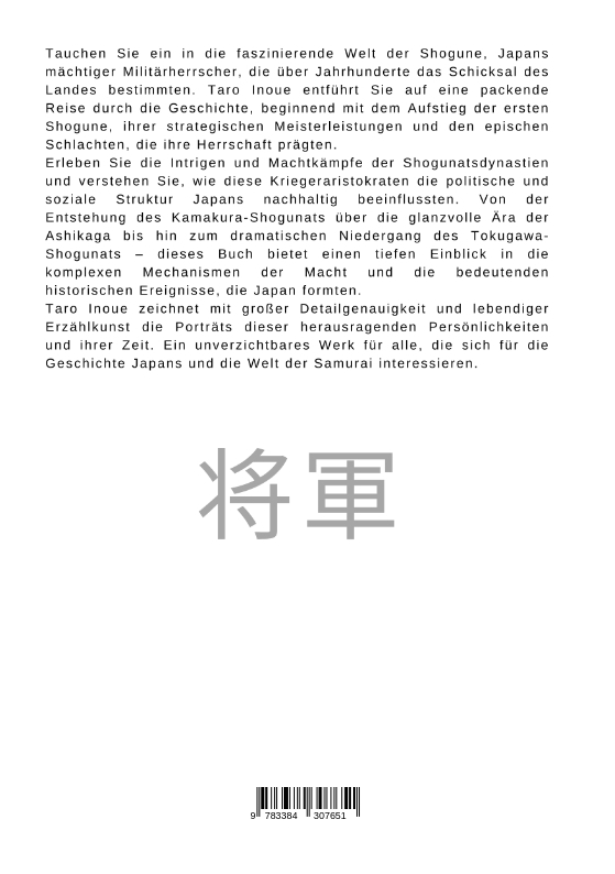 Tauchen Sie ein in die faszinierende Welt der Shogune, Japans mächtiger Militärherrscher, die über Jahrhunderte das Schicksal des Landes bestimmten. Taro Inoue entführt Sie auf eine packende Reise durch die Geschichte, beginnend mit dem Aufstieg der ersten Shogune, ihrer strategischen Meisterleistungen und den epischen Schlachten, die ihre Herrschaft prägten.Erleben Sie die Intrigen und Machtkämpfe der Shogunatsdynastien und verstehen Sie, wie diese Kriegeraristokraten die politische und soziale Struktur Japans nachhaltig beeinflussten. Von der Entstehung des Kamakura-Shogunats über die glanzvolle Ära der Ashikaga bis hin zum dramatischen Niedergang des Tokugawa-Shogunats - dieses Buch bietet einen tiefen Einblick in die komplexen Mechanismen der Macht und die bedeutenden historischen Ereignisse, die Japan formten.Taro Inoue zeichnet mit großer Detailgenauigkeit und lebendiger Erzählkunst die Porträts dieser herausragenden Persönlichkeiten und ihrer Zeit. Ein unverzichtbares Werk für alle, die sich für die Geschichte Japans und die Welt der Samurai interessieren.