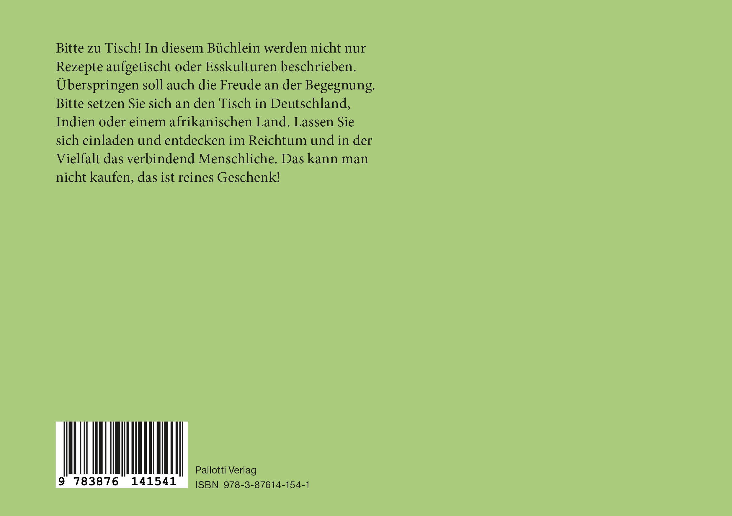 Bitte zu Tisch! In diesem Büchlein werden nicht nur Rezepte aufgetischt oder Esskulturen beschrieben. Überspringen soll auch die Freude an der Begegnung. Bitte setzen Sie sich an den Tisch in Deutschland, Indien oder einem afrikanischen Land. Lassen Sie sich einladen und entdecken im Reichtum und in der Vielfalt das verbindend Menschliche. Das kann man nicht kaufen, das ist reines Geschenk!