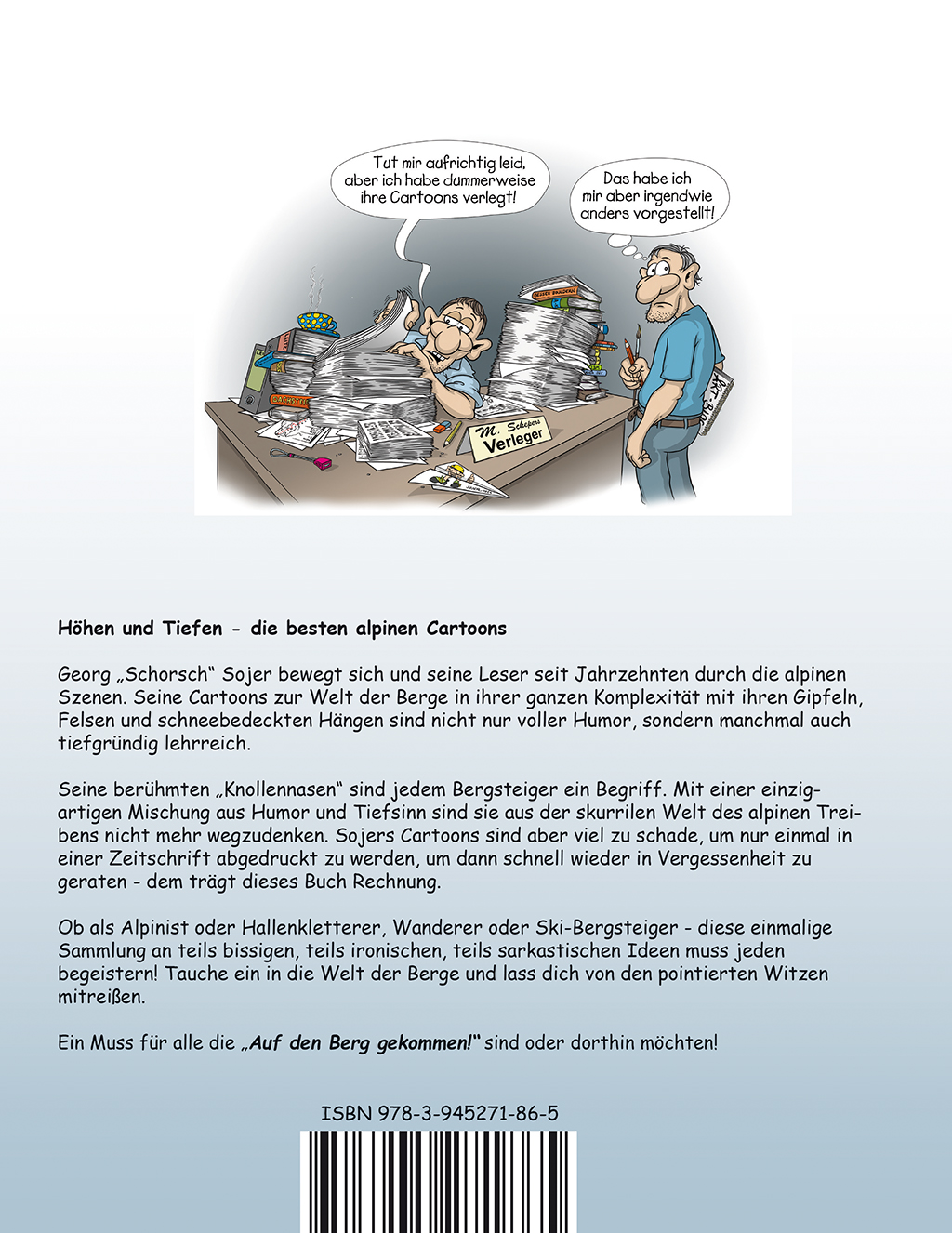 Georg „Schorsch“ Sojer bewegt sich und seine Leser seit Jahrzehnten durch die alpinen Szenen. Seine Cartoons zur Welt der Berge in ihrer ganzen Komplexität mit ihren Gipfeln, Felsen und schneebedeckten Hängen sind nicht nur voller Humor, sondern manchmal auch tiefgründig lehrreich.
