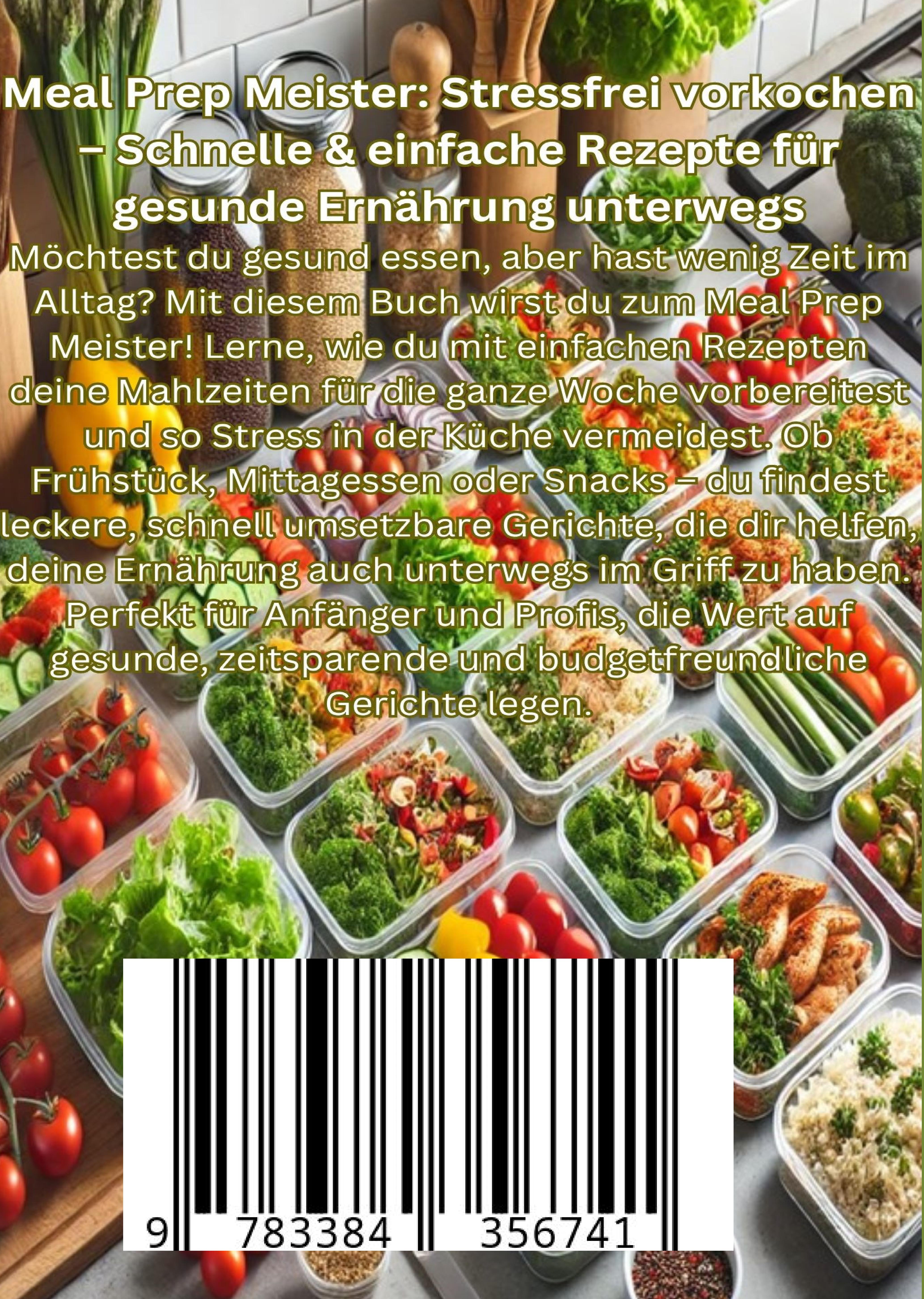 Meal Prep Meister: Stressfrei vorkochen - Schnelle & einfache Rezepte für gesunde Ernährung im Alltag, Büro und unterwegs ist das ultimative Handbuch für alle, die ihren Alltag mit gesunden, selbst zubereiteten Mahlzeiten leichter gestalten wollen. Mit praxiserprobten Tipps und einer Vielzahl an unkomplizierten Rezepten zeigt dir dieses Buch, wie du ohne großen Aufwand Mahlzeiten für die ganze Woche vorbereiten kannst - und das ganz stressfrei!Egal, ob du auf der Arbeit, beim Sport oder unterwegs bist, diese Rezepte sind ideal, um deine Ernährung zu kontrollieren, Geld zu sparen und Zeit in der Küche zu minimieren. Vom Frühstück bis zum Abendessen, von herzhaften Hauptgerichten bis zu leichten Snacks - hier findest du alles, was du für eine ausgewogene und praktische Ernährungsplanung benötigst.Lerne, wie du mit Batch Cooking, smarten Lagerungstechniken und saisonalen Zutaten das Beste aus deiner Meal-Prep-Routine herausholst, und genieße die Freiheit, dich auch an hektischen Tagen gesund und ausgewogen zu ernähren.Perfekt für alle, die gesund essen, Zeit sparen und ihre Ernährung besser planen möchten - ob Anfänger oder Meal Prep-Profi.