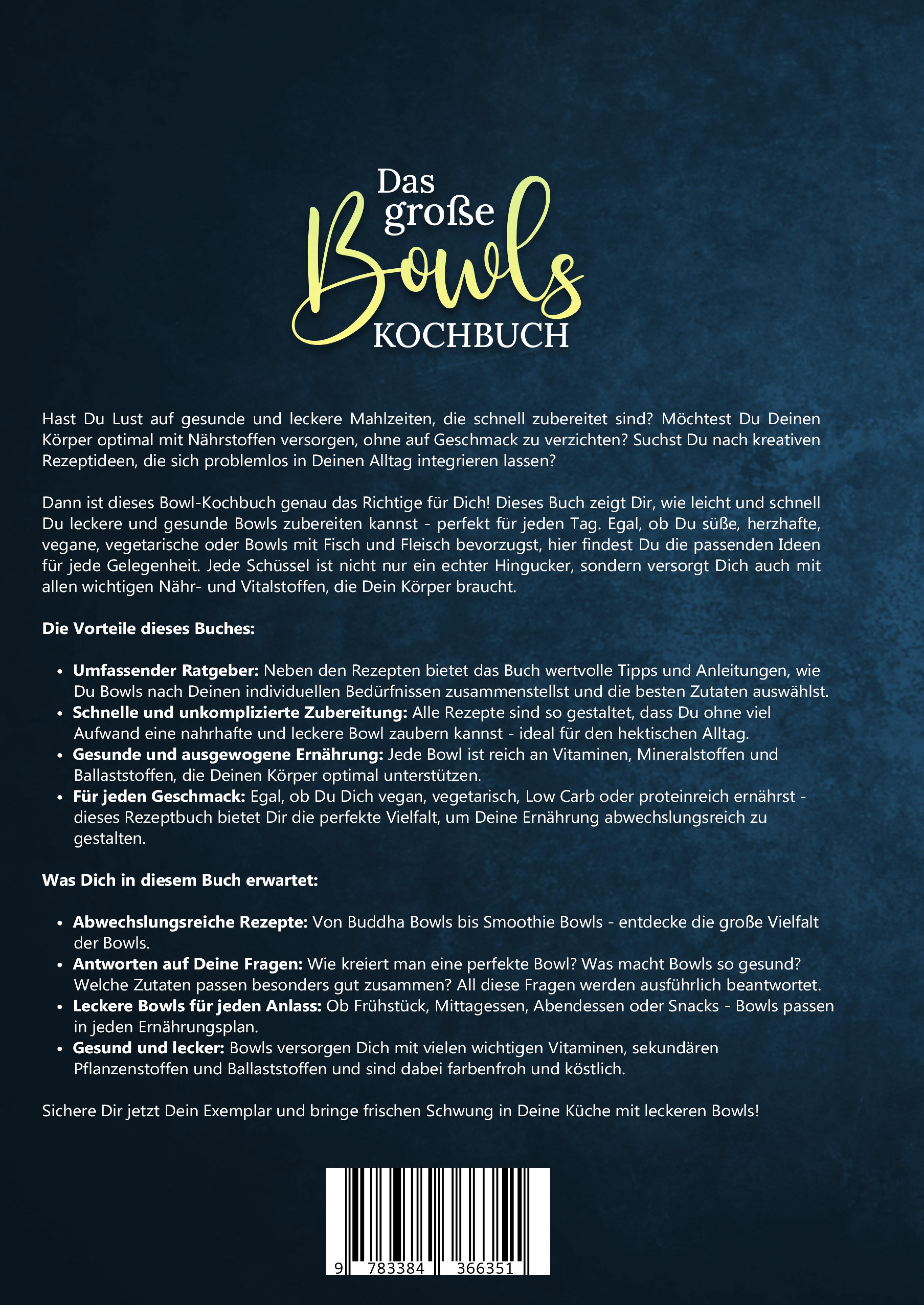 Hast Du Lust auf gesunde und leckere Mahlzeiten, die schnell zubereitet sind? Möchtest Du Deinen Körper optimal mit Nährstoffen versorgen, ohne auf Geschmack zu verzichten? Suchst Du nach kreativen Rezeptideen, die sich problemlos in Deinen Alltag integrieren lassen?Dann ist dieses Bowl-Kochbuch genau das Richtige für Dich! Dieses Buch zeigt Dir, wie leicht und schnell Du leckere und gesunde Bowls zubereiten kannst - perfekt für jeden Tag. Egal, ob Du süße, herzhafte, vegane, vegetarische oder Bowls mit Fisch und Fleisch bevorzugst, hier findest Du die passenden Ideen für jede Gelegenheit. Jede Schüssel ist nicht nur ein echter Hingucker, sondern versorgt Dich auch mit allen wichtigen Nähr- und Vitalstoffen, die Dein Körper braucht.Die Vorteile dieses Buches:- Umfassender Ratgeber: Neben den Rezepten bietet das Buch wertvolle Tipps und Anleitungen, wie Du Bowls nach Deinen individuellen Bedürfnissen zusammenstellst und die besten Zutaten auswählst.- Schnelle und unkomplizierte Zubereitung: Alle Rezepte sind so gestaltet, dass Du ohne viel Aufwand eine nahrhafte und leckere Bowl zaubern kannst - ideal für den hektischen Alltag.- Gesunde und ausgewogene Ernährung: Jede Bowl ist reich an Vitaminen, Mineralstoffen und Ballaststoffen, die Deinen Körper optimal unterstützen.- Für jeden Geschmack: Egal, ob Du Dich vegan, vegetarisch, Low Carb oder proteinreich ernährst - dieses Rezeptbuch bietet Dir die perfekte Vielfalt, um Deine Ernährung abwechslungsreich zu gestalten.Was Dich in diesem Buch erwartet:- Abwechslungsreiche Rezepte: Von Buddha Bowls bis Smoothie Bowls - entdecke die große Vielfalt der Bowls.- Antworten auf Deine Fragen: Wie kreiert man eine perfekte Bowl? Was macht Bowls so gesund? Welche Zutaten passen besonders gut zusammen? All diese Fragen werden ausführlich beantwortet.- Leckere Bowls für jeden Anlass: Ob Frühstück, Mittagessen, Abendessen oder Snacks - Bowls passen in jeden Ernährungsplan.- Gesund und lecker: Bowls versorgen Dich mit vielen wichtigen Vitaminen, sekundären Pflanzenstoffen und Ballaststoffen und sind dabei farbenfroh und köstlich.Sichere Dir jetzt Dein Exemplar und bringe frischen Schwung in Deine Küche mit leckeren Bowls!