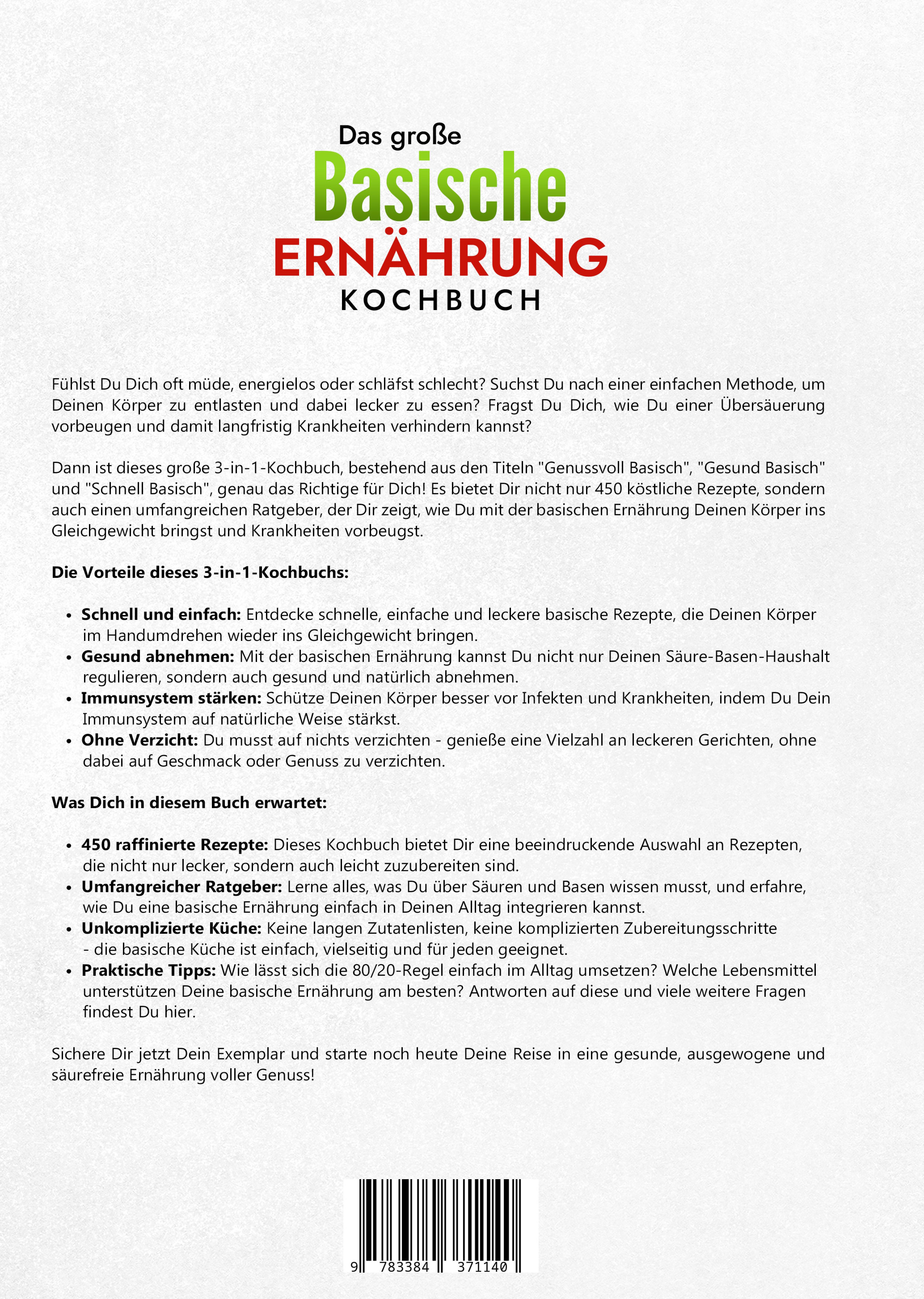 | Schlagworte | Basenfasten • basenfasten kur • basen kochbuch • Basisch • Basische Ernährung • basische ernährung abnehmen • basische ernährung anfänger • basische ernährung buch • Basische Ernährung Kochbuch • basische Küche • basische Lebensmittel • basische Rezepte • basisch ernähren • basisches Essen • basisches Kochbuch • basisch essen • basisch kochen • buch basische ernährung • ernährung basisch • kochbuch basische ernährung • rezept basisch • rezepte basenfasten • rezepte basisch • rezepte basische ernährung • Säure Basen Balance • säure basen buch • Säure basen haushalt • Säure-Basen-Haushalt • säure basen haushalt buch • säure basen kochbuch |