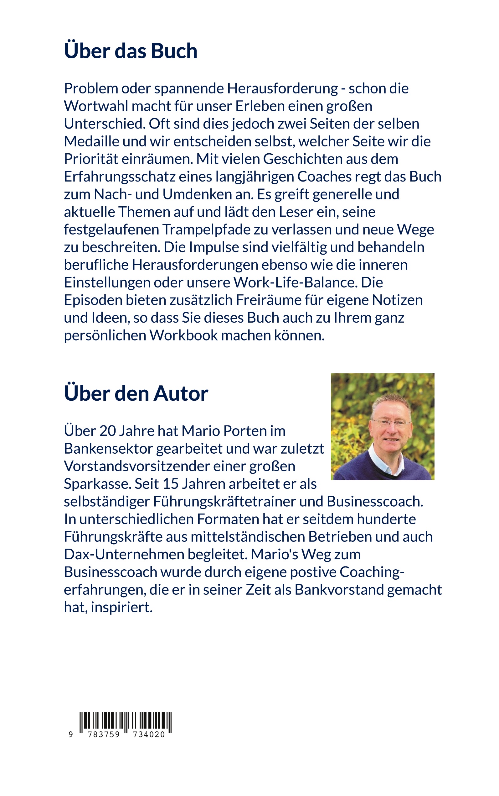 Ob berufliche Hürden oder private Sorgen – oft liegt die Lösung in unserer Perspektive. Dieses inspirierende Buch, geschrieben von einem erfahrenen Coach, zeigt Ihnen, wie Sie durch einen einfachen Perspektivwechsel aus Problemen spannende Herausforderungen machen. Mit zahlreichen persönlichen Geschichten und erprobten Selbstcoaching-Impulsen unterstützt Sie der Autor dabei, neue Wege zu finden und festgefahrene Denkmuster zu durchbrechen.
