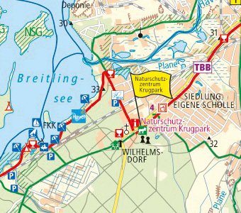 Das Gebiet westlich von Potsdam bis Brandenburg a. d. Havel wird mit der Radwanderkarte Havelland - Potsdam für Radler erschlossen. 6 Fernwanderwege und zahlreiche regionale sind im Kartenteil markiert und auf der Rückseite der Radwanderkarte Havelland - Potsdam beschrieben. Die märkische Landschaft vor Berlin bietet Erholungswert in den drei Naturparks. Die wasserreiche Region mit Wäldern, Wiesen, Bächen bietet Ruhe, aber Orte wie Brandenburg, Potsdam und zahlreiche Schlösser auch kulturelle Highlights.