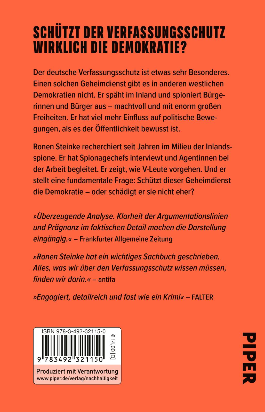Ronen Steinke recherchiert seit Jahren im Milieu der Inlandsspione. Er hat Spionagechefs interviewt und Agentinnen bei der Arbeit begleitet. Er zeigt, wie V-Leute vorgehen. Und er stellt eine fundamentale Frage: Schützt dieser Geheimdienst die Demokratie - oder schädigt er sie nicht eher?