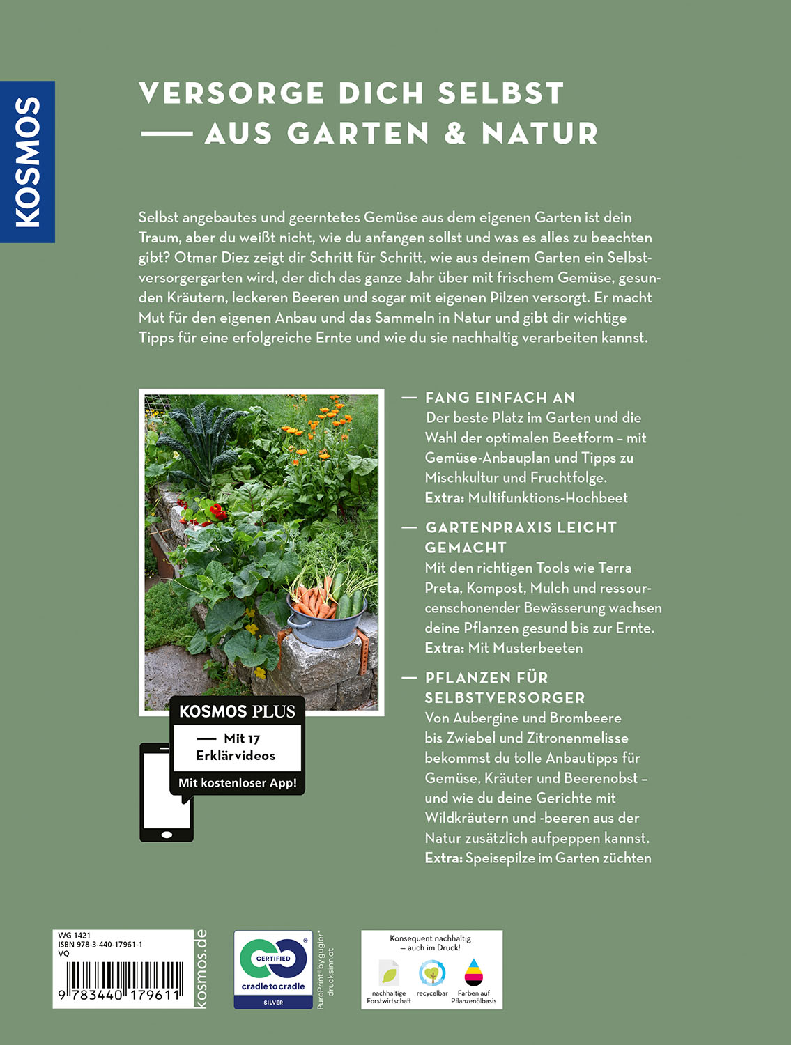 Getreu dem Motto „einfach machen“ zeigt SPIEGEL Bestseller Autor Otmar Diez in diesem Buch, wie leicht der Start in den Selbstversorgergarten sein kann. Seine Planungs-, Praxis- und Pflegetipps machen Mut und erklären, wie ganzjährig Gemüse, Kräuter, Beeren und sogar Pilze geerntet werden können. Extra: Mit Erklärvideos in der KOSMOS-PLUS-App