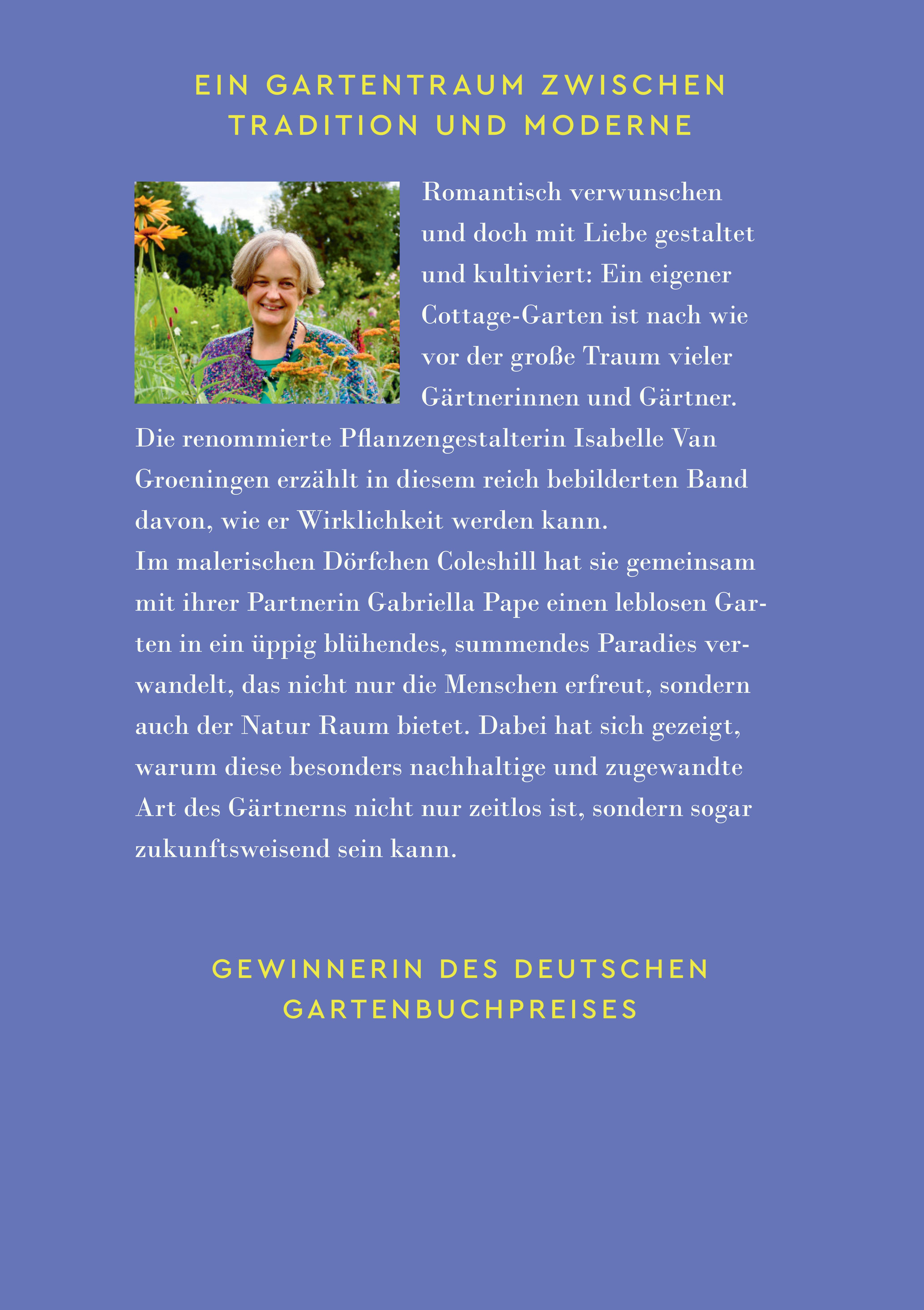 Romantisch verwunschen und doch mit Liebe gestaltet und kultiviert: Ein eigener Cottage-Garten ist nach wie vor der große Traum vieler Gärtner:innen. Die Expertin Isabelle Van Groeningen erzählt in diesem reich bebilderten Band davon, wie er Wirklichkeit werden kann. Und vor allem: Warum diese besonders nachhaltige und zugewandte Art des Gärtnerns nicht nur zeitlos ist, sondern sogar zukunftsweisend sein kann.