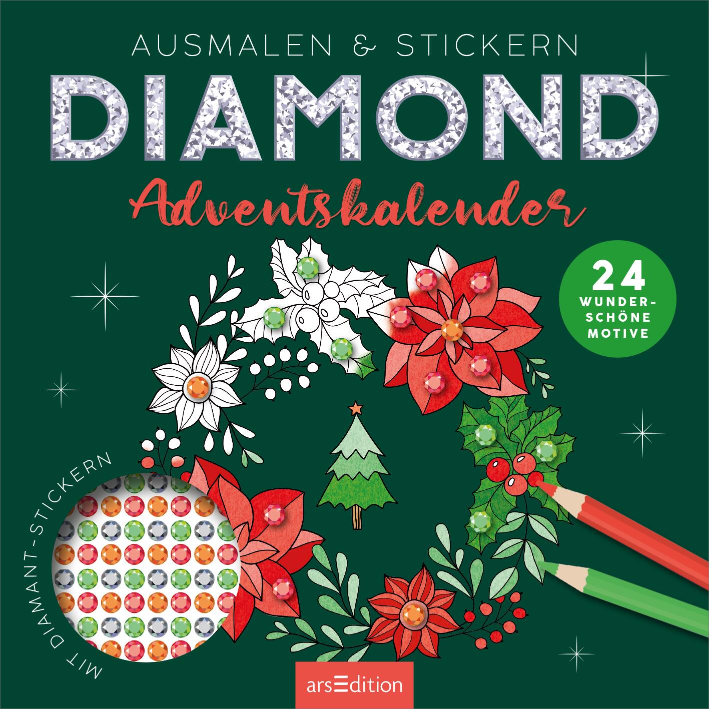 - 24 verschiedene Motive: Hier finden sich für jeden Tag im Advent abwechslungsreiche Motive zum Anmalen, die mit 700 farbigen Diamanten zusätzlich verziert werden können