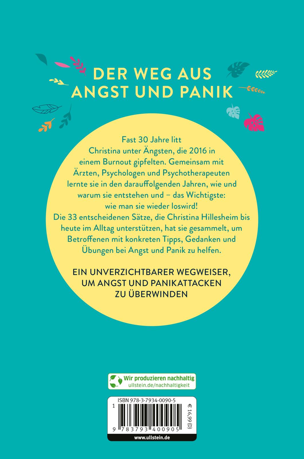 Die 33 wichtigsten Sätze, die Christina Hillesheim bis heute im Alltag helfen, hat sie in ihrem neuesten Buch gesammelt, um Betroffene mit Fallbeispielen und konkreten Übungen in akuten Angst-Situationen zu helfen.