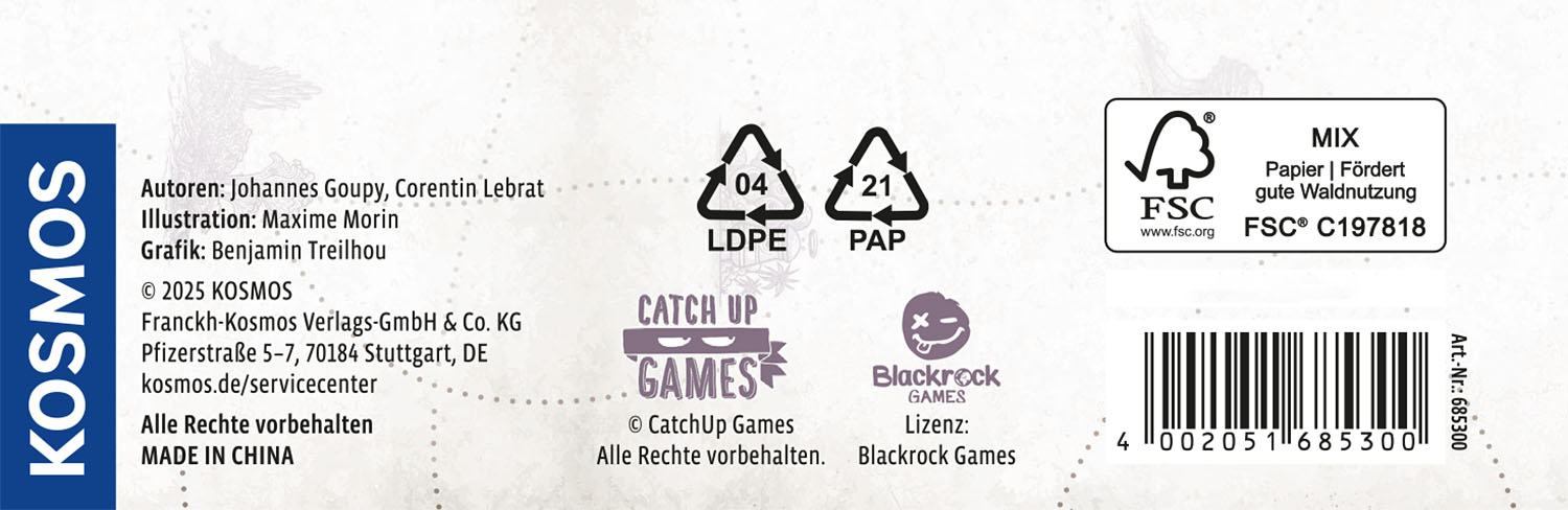 | Schlagworte | Abenteuerspiel • Brettspiele • Familienspiele • Fantasy • faraway • Gesellschaftsspiel • gesellschaftsspiele für erwachsene • Kartenspiel • kartenspiel erwachsene • spiel erwachsene • Strategiespiel |