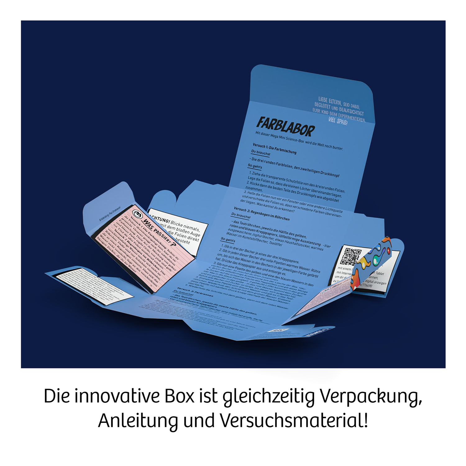 Dank der innovativen Box, die gleichzeitig Verpackung, Anleitung und Versuchsmaterial ist, wird Experimentieren zum großen Spaß für Groß und Klein.