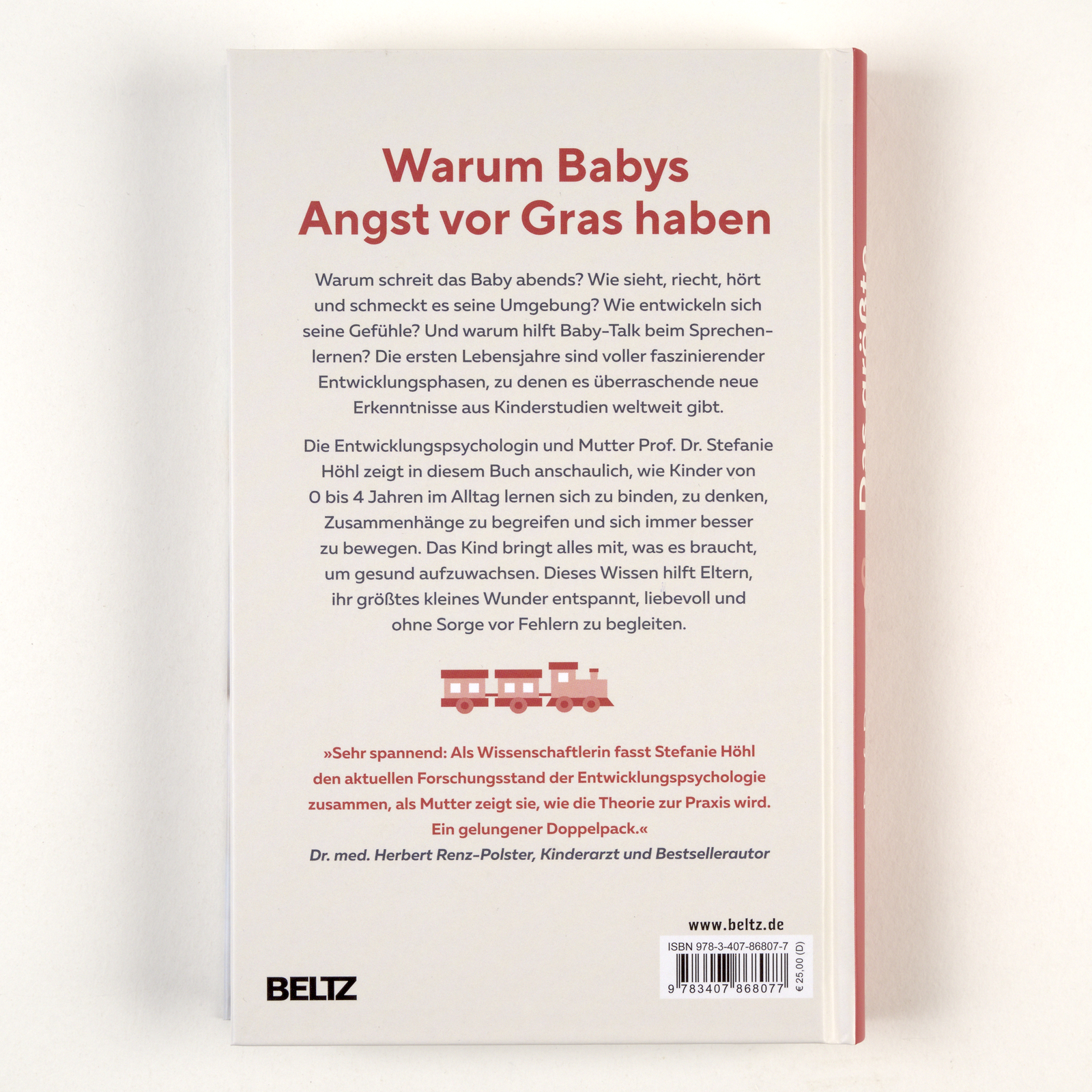 Warum haben Babys Angst vor Gras? Warum schreit das Baby abends, wie sieht, riecht, hört und schmeckt es seine Umgebung? Die ersten vier Lebensjahre sind voller faszinierender Entwicklungsphasen, zu denen es ebenso faszinierende neue Erkenntnisse aus Kinderstudien weltweit gibt. Prof. Dr. Stefanie Höhl zeigt anschaulich, wie Kinder im Alltag lernen sich zu binden, zu fühlen, wahrzunehmen, zu denken, Zusammenhänge zu begreifen und sich immer besser zu bewegen. Und wie dieses Wissen Eltern hilft, ihre Kinder entspannt zu begleiten, z.B. wenn Babys wegen ihres eingebauten evolutionären Schutzmechanismus vor Pflanzen erst lernen müssen, dass Gras ungefährlich ist.