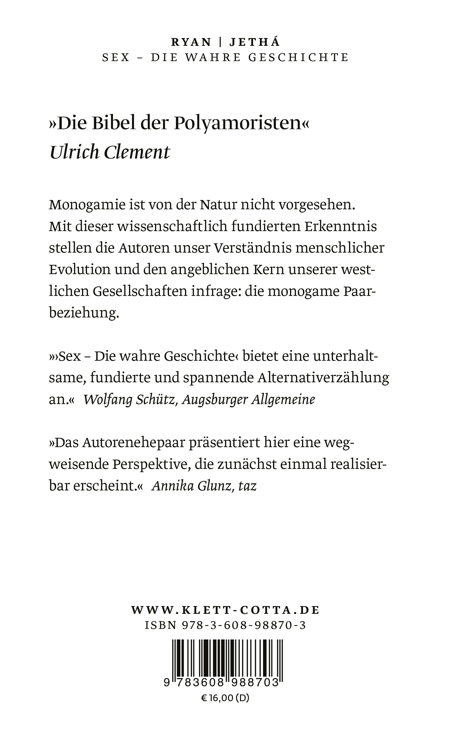| Schlagworte | Evolutionsbiologie • Menschliche Evolution • Monigamie • Partnerschaft • Polyamorie • Polygamie • Sex • Sexualität • Sexualwissenschaft |