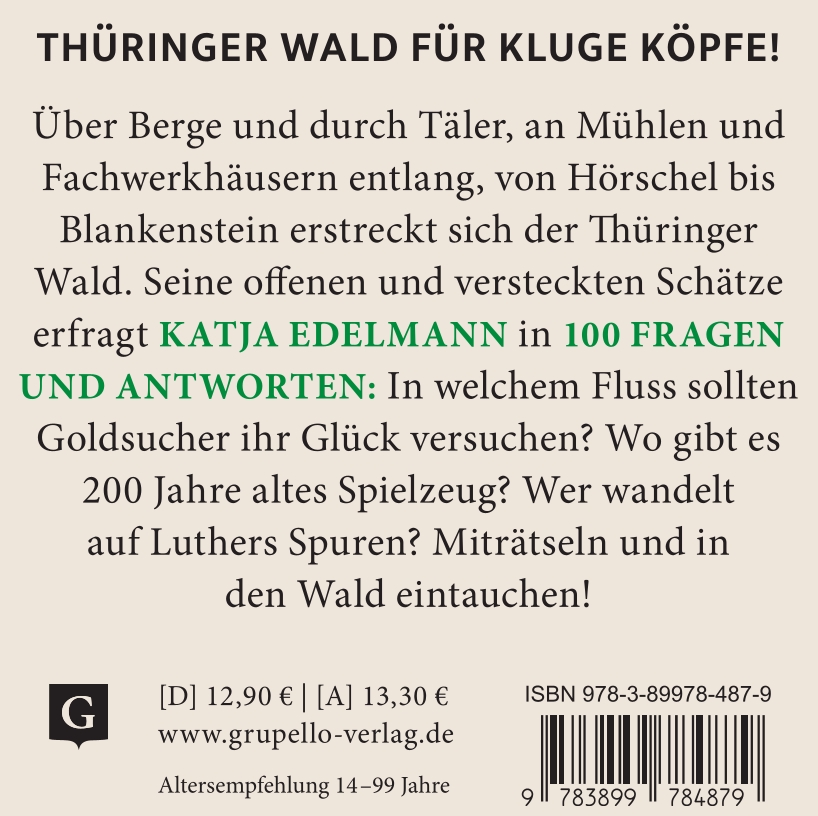Über Berge und durch Täler, an Mühlen und Fachwerkhäusern entlang, von Hörschel bis Blankenstein erstreckt sich der Thüringer Wald. Wer hier nur an Bratwurst, Rennsteig und Fichten denkt, übersieht vieles. Die versteckten Schätze des Thüringer Waldes erfragt das Quiz spielerisch: In welchem Fluss sollten Goldsucher ihr Glück versuchen? Wo gibt es 200 Jahre altes Spielzeug? Wer wandelt auf Luthers Spuren? Miträtseln und in 100 Fragen und Antworten in den Wald eintauchen!Stilvoll, elegant und immer eine gute Idee: Die Reihe "Quiz im Quadrat" präsentiert sich in modernem Design und sorgt für unterhaltsamen Rätselspaß - verpackt in einer edlen Geschenkbox. Perfekt als besondere 'Grußkarte' mit Mehrwert - zum Verschenken oder Selberfreuen!