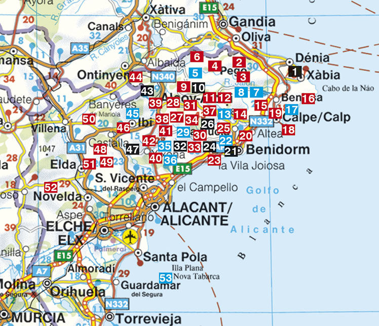 Dénia - Calp - Benidorm - Alcoi - Alicante. 53 Touren. Mit GPS-Tracks