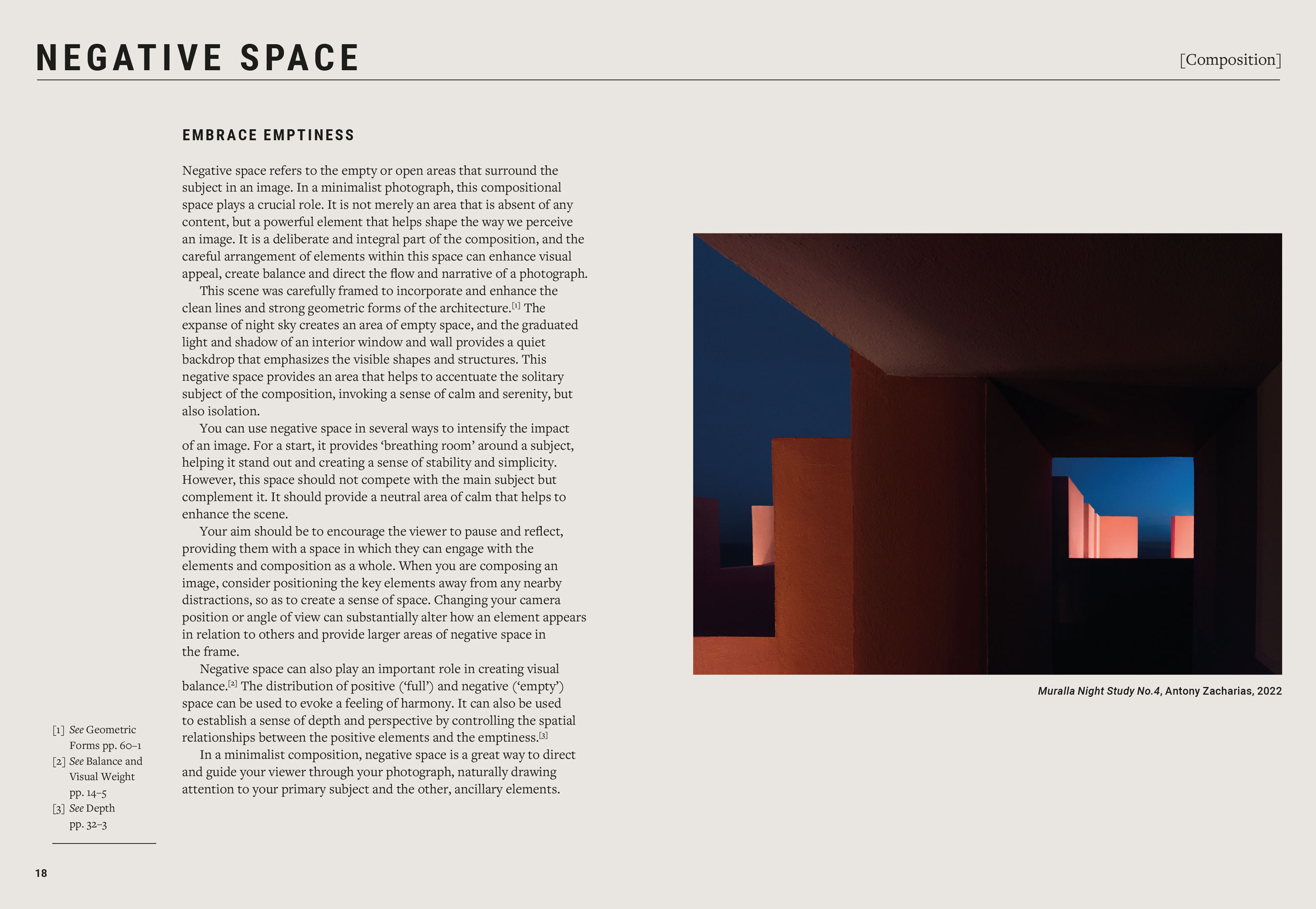 Antony Zacharias ist ein professioneller Fotograf, der sich auf Architektur- und Langzeitaufnahmen spezialisiert hat und dabei auf Minimalismus setzt. Zu seinen bisherigen Büchern gehören »Mastering Long Exposure Photography« und »52 Assignments: Travel Photography« . Neben seiner Tätigkeit als Autor, Dozent und Lehrer für Fotografie wurde er von zahlreichen Unternehmen beauftragt, darunter Mandarin Oriental, Toyota und Sky Atlantic, Seine Arbeiten wurden von der BBC, dem Guardian, der Times, CBS, Ecologist und zahlreichen Fotomagazinen veröffentlicht.