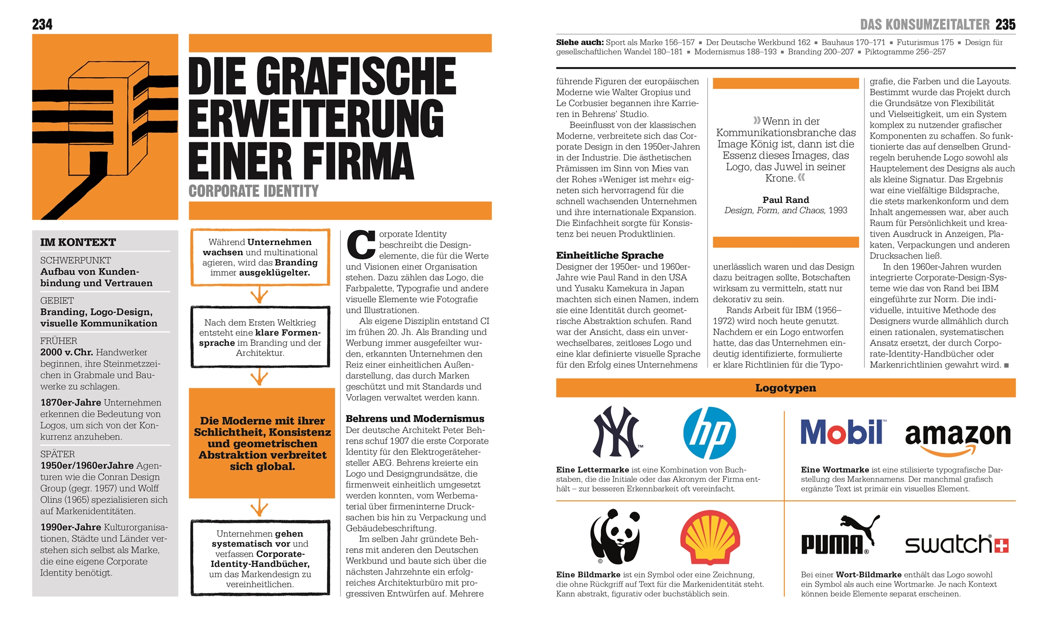 Von frühen Keramiken bis zum Internet der Dinge, von Bauhaus bis Ford Modell T: Auf eine kurze Einführung in Design und Entwurf folgen die wichtigsten Ideen, Innovationen und Durchbrüche in chronologischer Reihenfolge. Zitate und Biografie-Kästen liefern Informationen zu den Macher*innen hinter den Ideen.