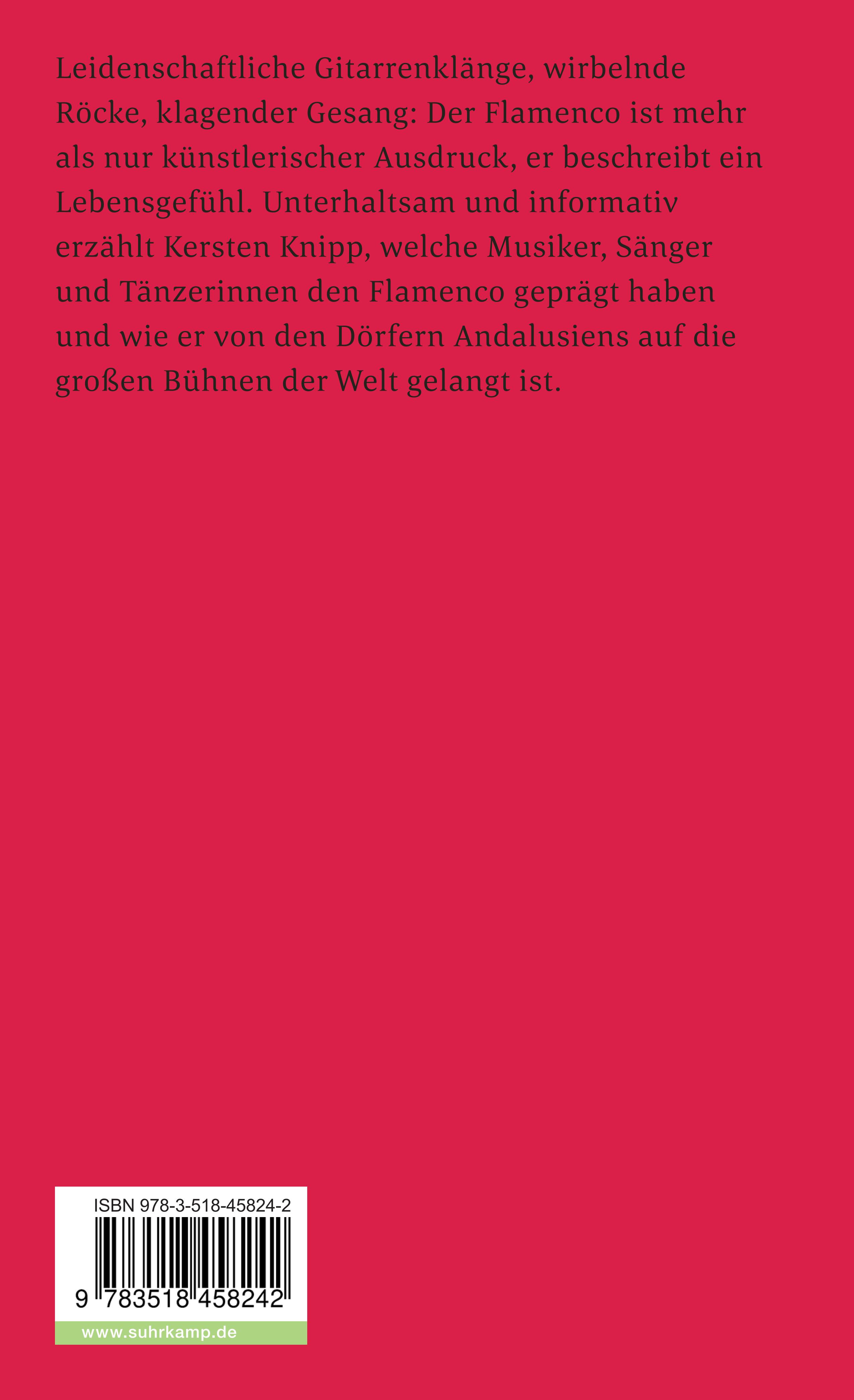 Schuhsohlen und Absätze bearbeiten die Bretter und lassen den Staub meterhoch aufwirbeln. Kraftvoll und leidenschaftlich erklingen die Gitarren, und laut klagend ist der Gesang - der Rhythmus der schmetternden Füße treibt ihn voran. Das ist Flamenco in seiner traditionellen Form: die Einheit von Gesang,Tanz und Musik.Woher kommt diese bekannteste musikalische Ausdrucksform Andalusiens? Wieso sind Schmerz und Trauer ihre vornehmlichen Themen? Spannend schreibt der Autor nicht nur über die Geschichte des Flamenco, sondern auch über die Liedtexte, die Interpreten, die legendären Cafés Cantantes. Dichter wie García Lorca haben sich für die Bewahrung des traditionellen Flamenco eingesetzt, doch die Veränderungen ließen sich nicht aufhalten, und der Flamenco mit all seinen Varianten hat heute Anhänger in der ganzen Welt.Kersten Knipp, geboren 1966, ist promovierter Romanist und lebt als freier Journalist in Köln.