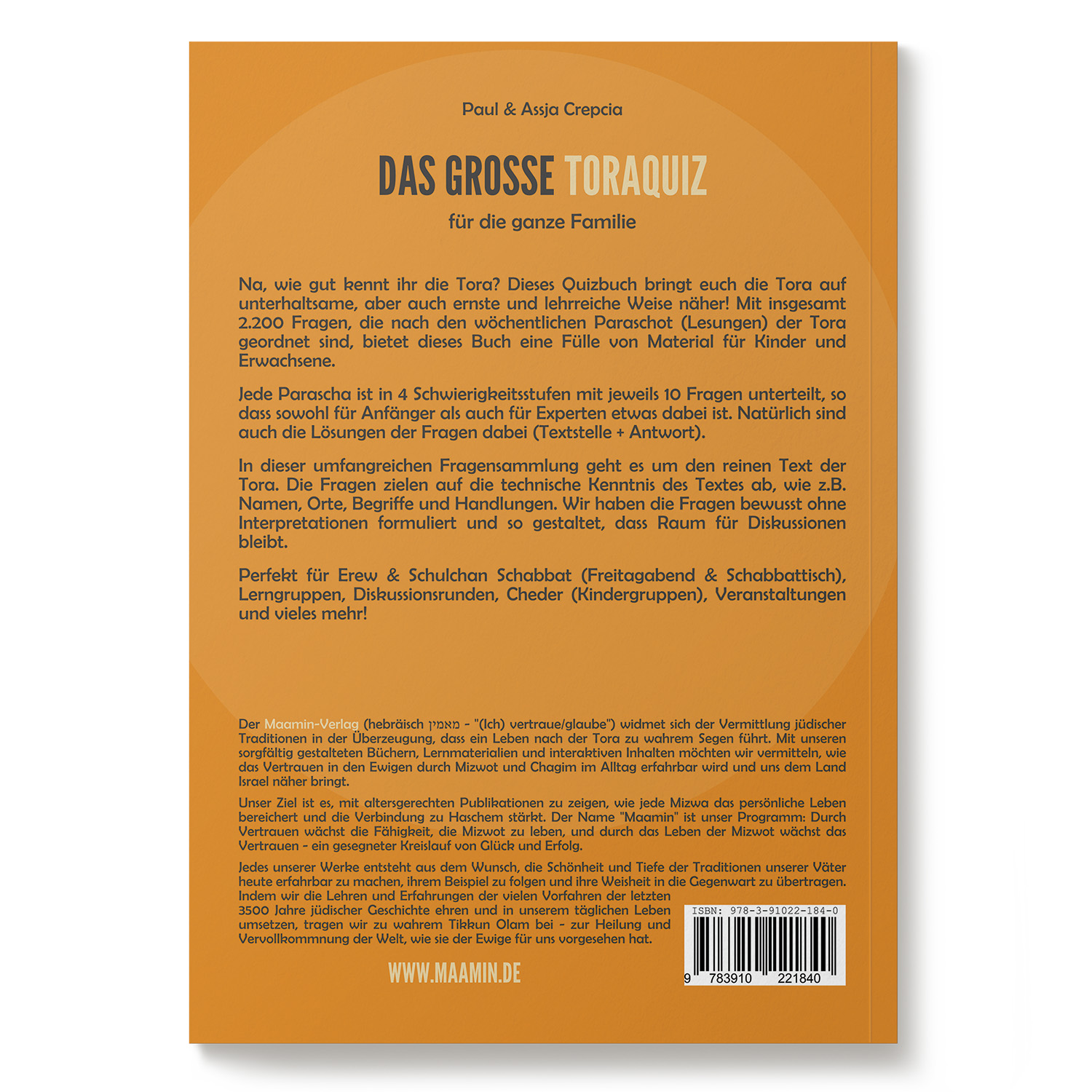 | Schlagworte | Bibelquiz • bibel rätsel • Chagim • Fragen und Antworten aus der Tora • Hebräisch • Israel • Judentum • Jüdisch • Jüdische Feste • Jüdisches Quiz • Jüdische Textbücher • Megilla • Paracha Quiz • Parascha • Quiz über die Tora • Tora • Tora Arbeitsbuch • Tora lernen • Tora lesen • Toraquiz • Tora Quiz • Tora Quizbuch • Tora Rätsel • Tora Wissen • Wöchentliche Lesung |