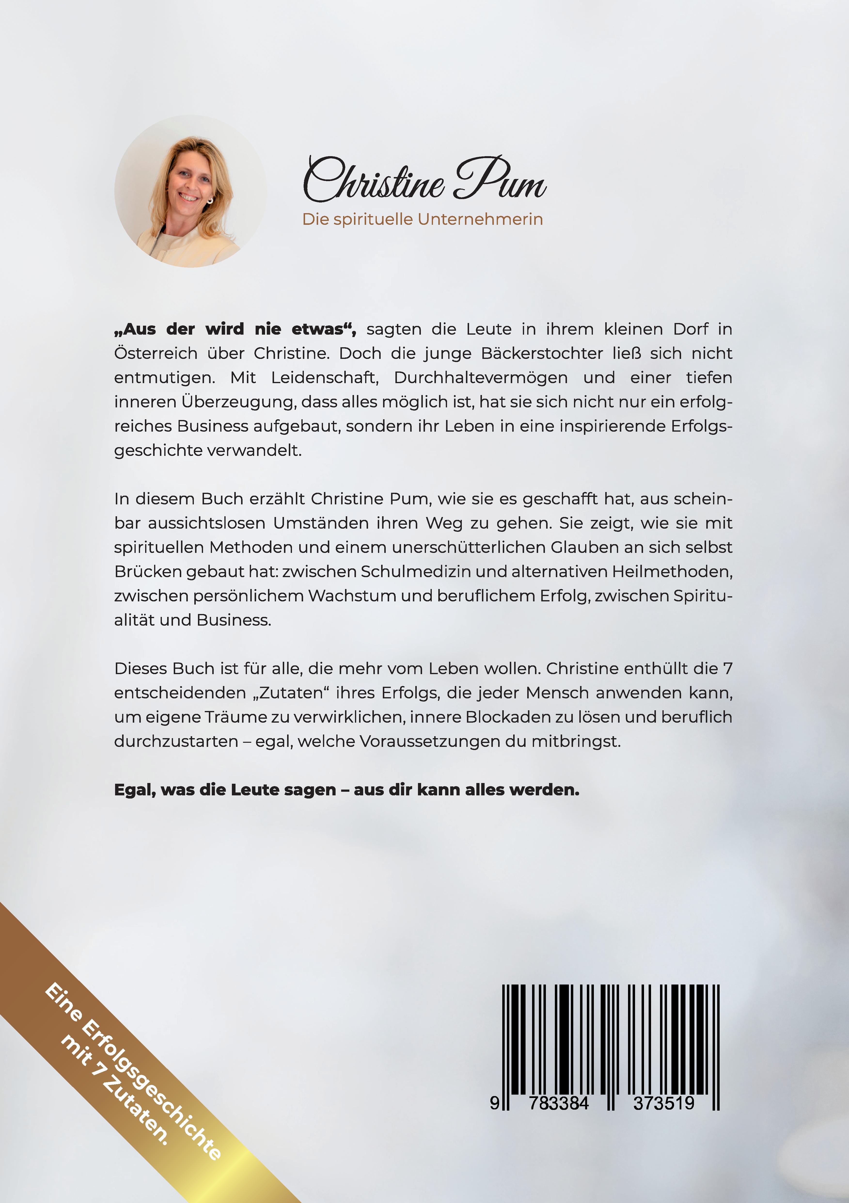 Die Zeit für die leisen Talente und mehr Feingefühl ist gekommen, sagt die spirituelle Unternehmerin Christine Pum. Wir brauchen mehr echte Tiefe im Leben und erst recht im Beruf, wenn wir wirklich glücklich sein wollen. Erfolg und Fülle sind ein Geburtsrecht, davon ist sie überzeugt. Als Coachin für hochsensible Frauen leistet sie einen wertvollen Beitrag für ein Unternehmertum, in dem Intuition, Medialität und subtile Wahrnehmung nicht nur hoch anerkannt sind, sondern auch hoch wirksam eingesetzt werden. Es kommt darauf an, auf das eigene Herz zu hören und der inneren Berufung zu folgen. Christine Pum (*1975 in Gmunden) wuchs in einer katholischen Unternehmerfamilie auf. Der schwere Alltag, geprägt von harter Arbeit und ständigen existenziellen Sorgen, hat sie früh für ihr Leben stark gemacht. Die Frauen in ihrer Familie, insbesondere die Mutter, hatten allerdings hellsichtige Begabungen, und so begann für das ebenfalls spürige Mädchen schon früh die Suche nach dem wahren Sinn, der „hinter den Dingen“ liegt. Nach der Schule begann Christine Pum eine Berufsausbildung zur Bürokauffrau. Sie heiratete und bekam drei Kinder. Ihr Lebensweg schien vorprogrammiert. Im Alter von 41 Jahren wurde sie von einem dramatischen Schicksalsschag so schwer erschüttert, dass sie in ihrem Leben eine massive Wende einleitete, ihrem Herzensweg folgte und letztlich zu ihrer wahren Berufung fand. Eine Reihe von Ausbildungen, u.a. Cranio-Sakral-Praxis, Systemisches Familienstellen, Kinesiologie, Hypnose, Human Design und die Staatlich geprüfte Lebens- und Sozialberatung ermöglichten ihr, sich selbstständig zu machen und ein spirituelles Business aufzubauen. Es ist ihr Ziel, Menschen zu ermutigen, karmische Grenzen zu überwinden, über sich hinauszuwachsen und ihr authentisches Herzenspotenzial – insbesondere hochsensible Talente – beruflich erfolgreich einzusetzen.