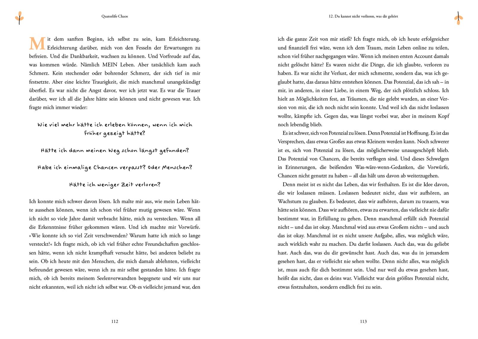| Schlagworte | 20er • Chaos • Eigenverantwortung • Erwachsenwerden • Erwartungen • Identitätssuche • Lebenskrise • Neuanfang • Orientierungslosigkeit • Quarterlife Crisis • Selbstfindung • Selbstliebe • Veränderung • Verlorensein |