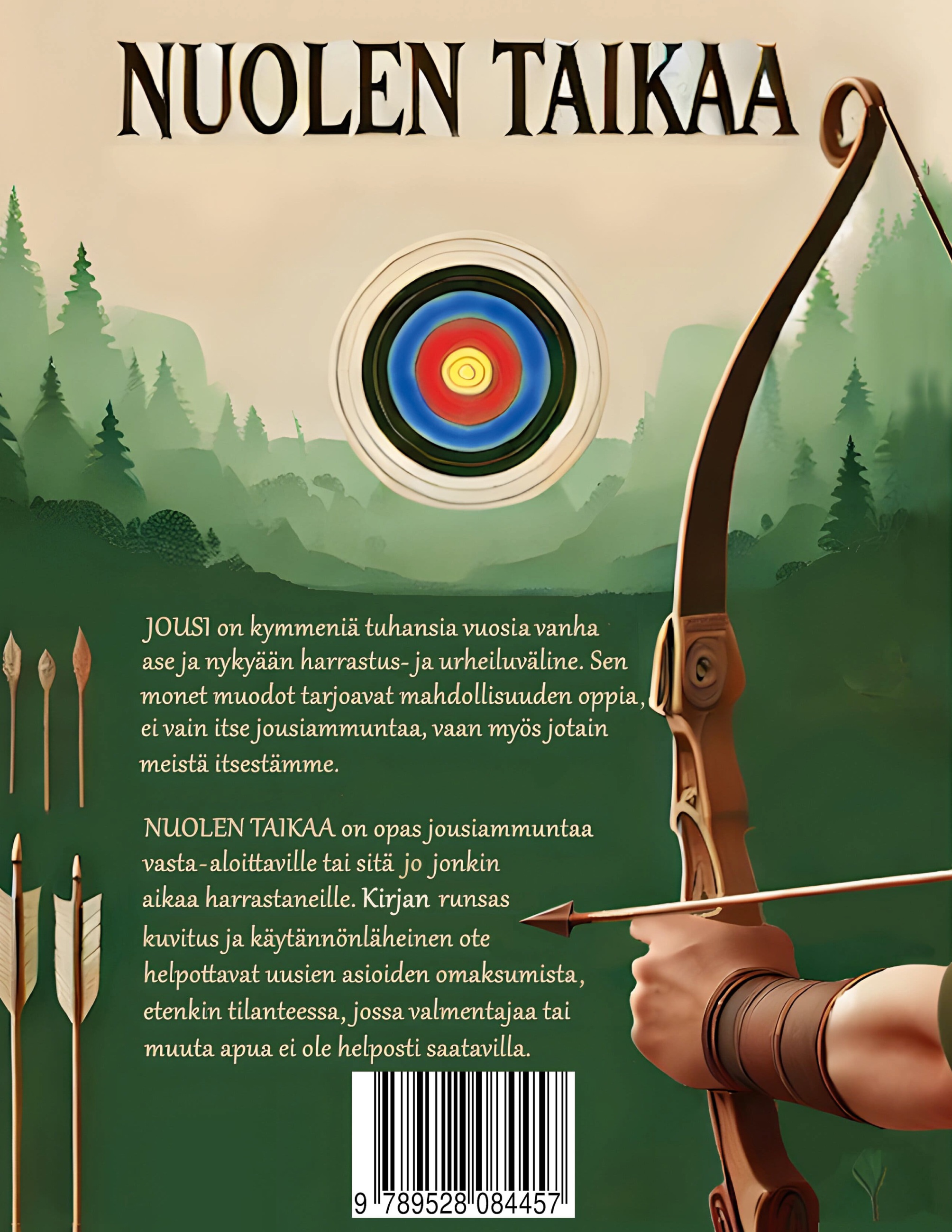 Nuolen taikaa on aloittelijan opas jousiammuntaan. Kirja antaa käytännönläheisiä ohjeita miten juuri sinä pääset parhaiten alkuun jousiampujan urallasi ja milla tavoin voit kehittää itseäsi ampujana.
