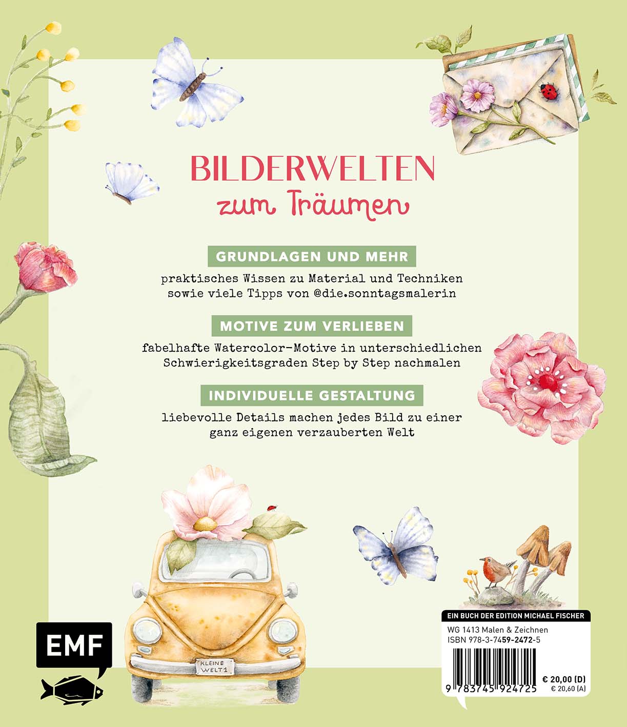 Jennifer Tremmel, auf Instagram als die.sonntagsmalerin bekannt, zeigt in diesem Buch für Einsteiger*innen, wie man den Pinsel besonders liebevoll schwingt und damit herrlich verspielte Watercolor-Welten entstehen lässt. Ausführliche Step-by-Step-Anleitungen erleichtern das Nachmalen. Ein praktischer Grundlagenteil sorgt für das nötige Know-how. Egal ob bunte Blüten, niedliche Waldtiere oder kleine Pilzhäuschen: Jennys Motive machen einfach glücklich!