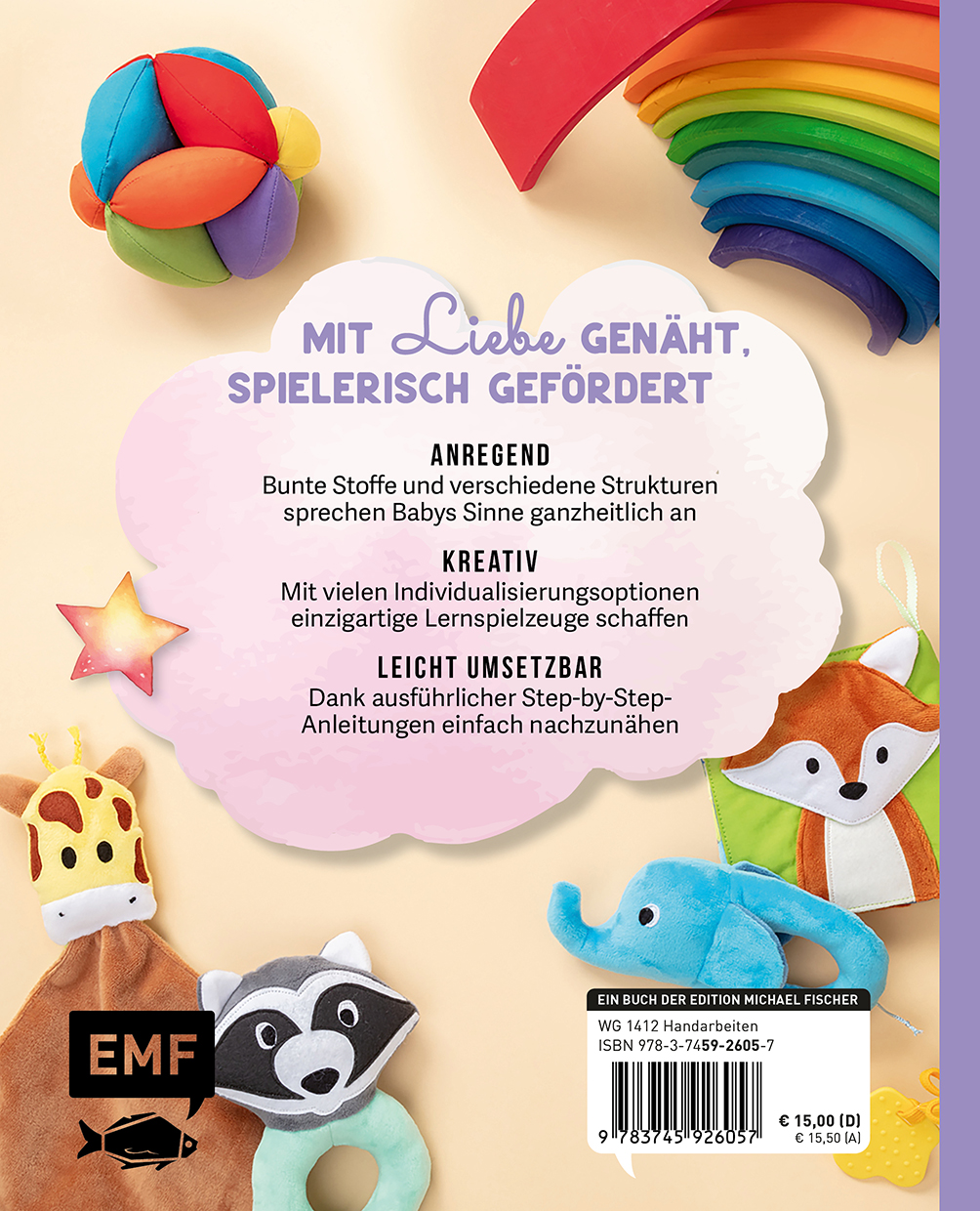 Gestalte individuelles Lernspielzeug für die Kleinsten und rege dabei die Sinne mit bunten Stoffen, niedlichen Motiven und verschiedenen Stoffstrukturen an. Die liebevoll gestalteten Nähprojekte bieten eine kreative, spielerische und lehrreiche Beschäftigung.
