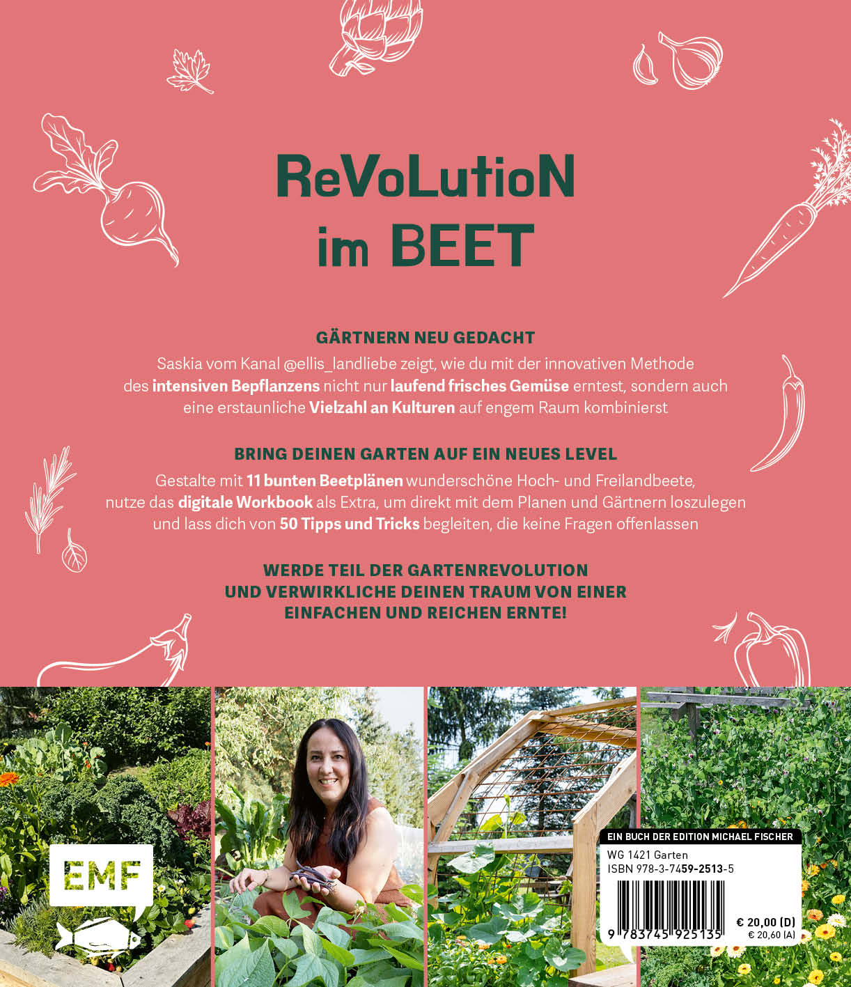 Elli vom Instagram-Kanal @ellis_landliebe zeigt allen angehenden Gärtner*innen wie man anfängt: von der Bestandsaufnahme des eigenen Gartens und der ersten Aussaat über die Pflege der Pflanzen bis zur Ernte. Mit ihren Tipps und Tricks wirst du im Garten direkt zum Profi. Ob du Mehltau bekämpfen, eine erfolgreiche Tomatenernte einfahren oder das Hochbeet optimal nutzen möchtest - Elli weiß immer einen Rat und gibt ihre langjährigen Gartenerfahrungen zu allen wichtigen Themen in diesem Buch an dich weiter. Mit ihren 10 Beetplänen gelingt der Einstieg in den Anbau von Gemüse schnell und einfach. Mit ihrer besonderen Anbauweise, durch die das Beet optimal bewirtschaftet wird, bleibt der Gemüsekorb nie mehr leer. Leg los, mach dir die Hände schmutzig und ernte was das Zeug hält!